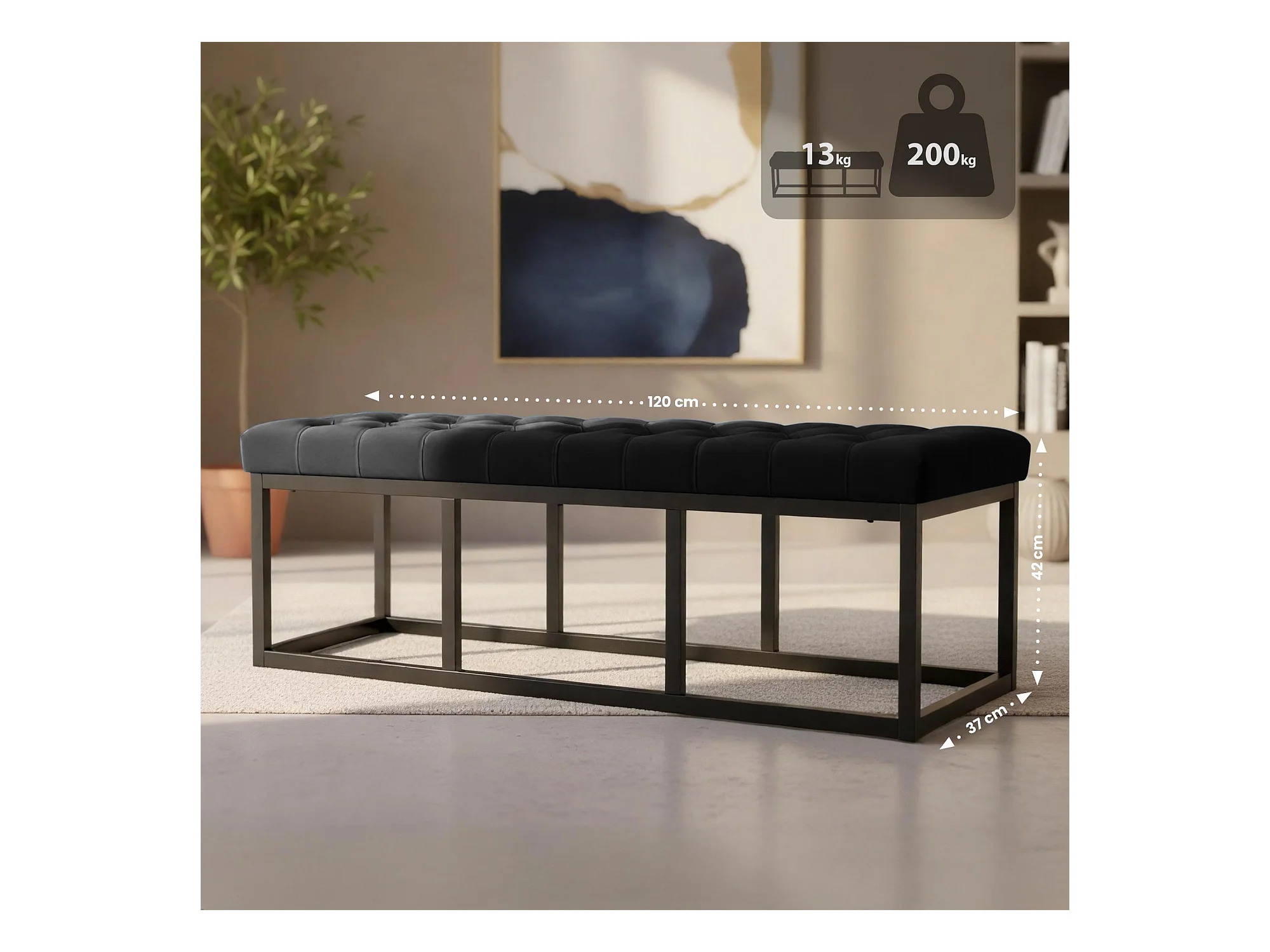 Banc avec dossier Noir 119,5x64,5x75 cm Velours