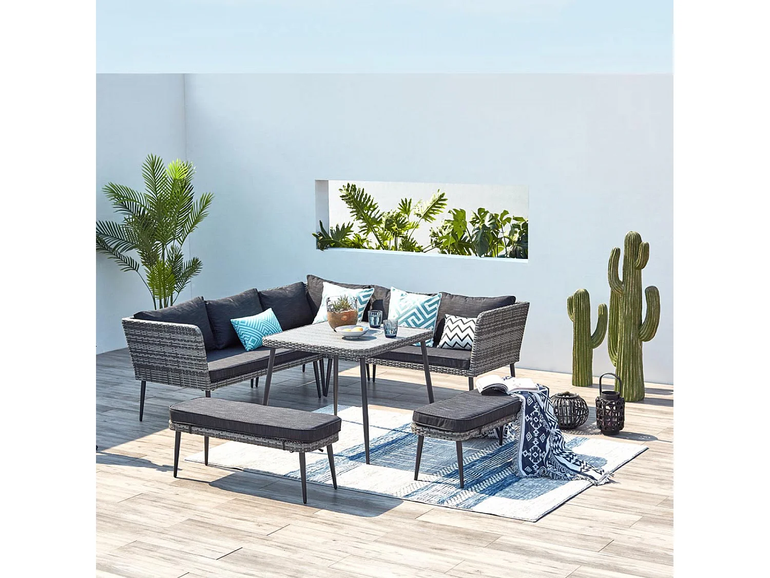 Salon de jardin 9 places en résine gris BARACOA