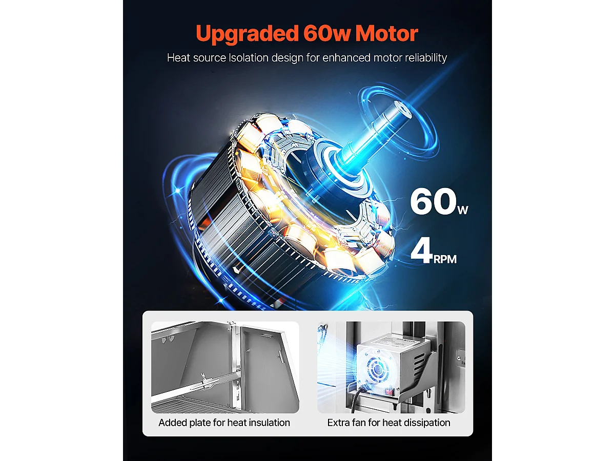 Barbecue à Rôtisserie SucceBuy 42 W, Rôtissoire électrique, Moteur Puissant de 42 W, Capacité de 61 kg