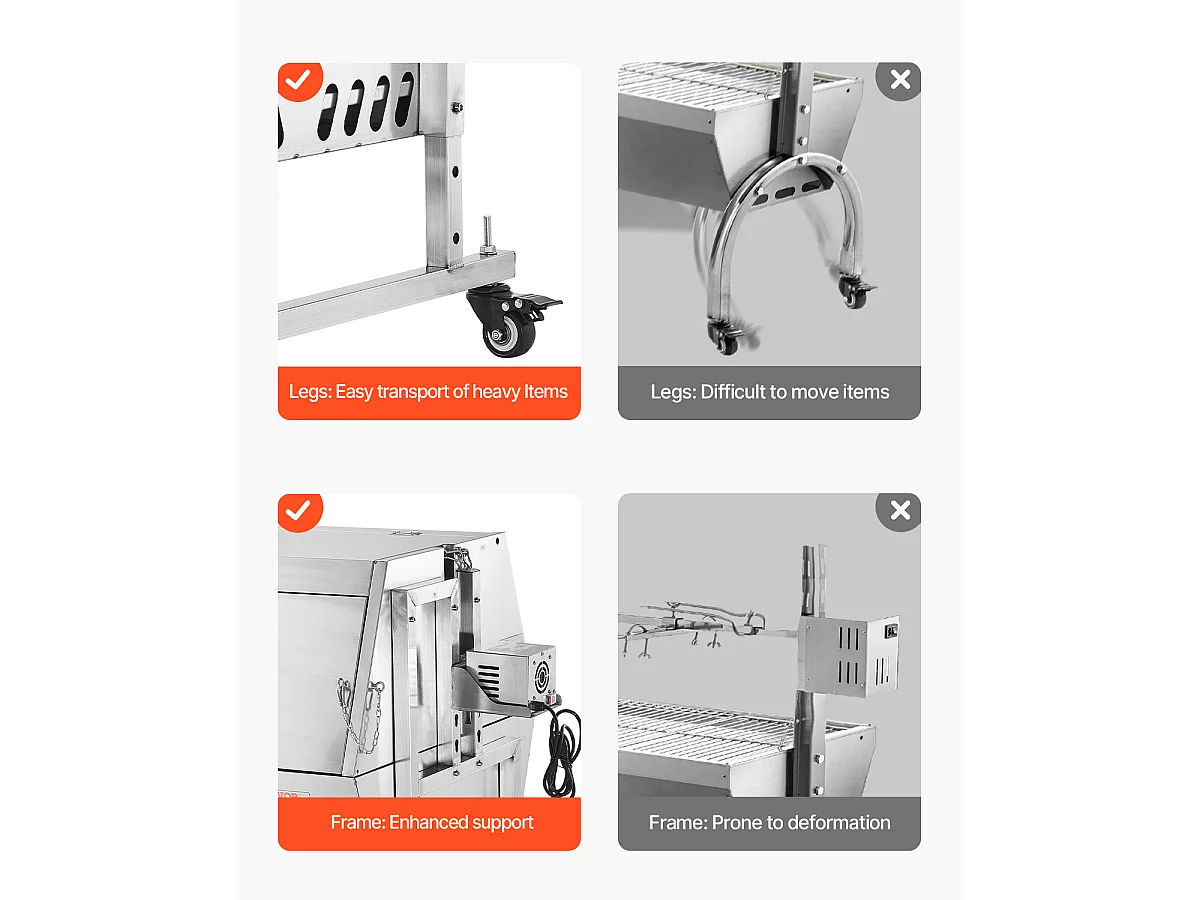 Barbecue à Rôtisserie SucceBuy 52 W Roaster Spit Rotisserie BBQ Grill Porc Agneau Poulet 60 kg Acier Inoxydable