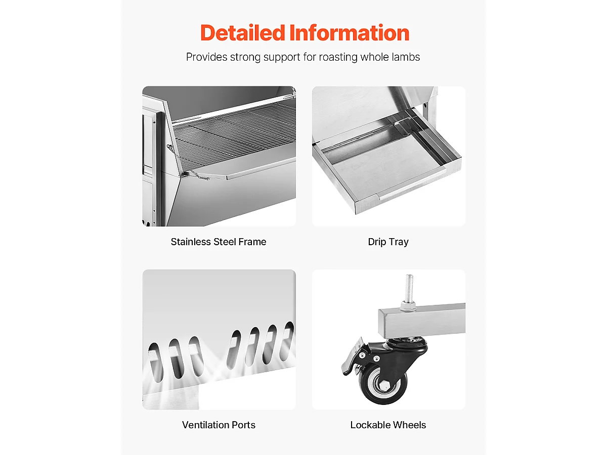 Barbecue à Rôtisserie SucceBuy Cochon de Lait avec Rôtissoire pour Agneau, Poulet 130 kg 60 W Acier Inoxydable