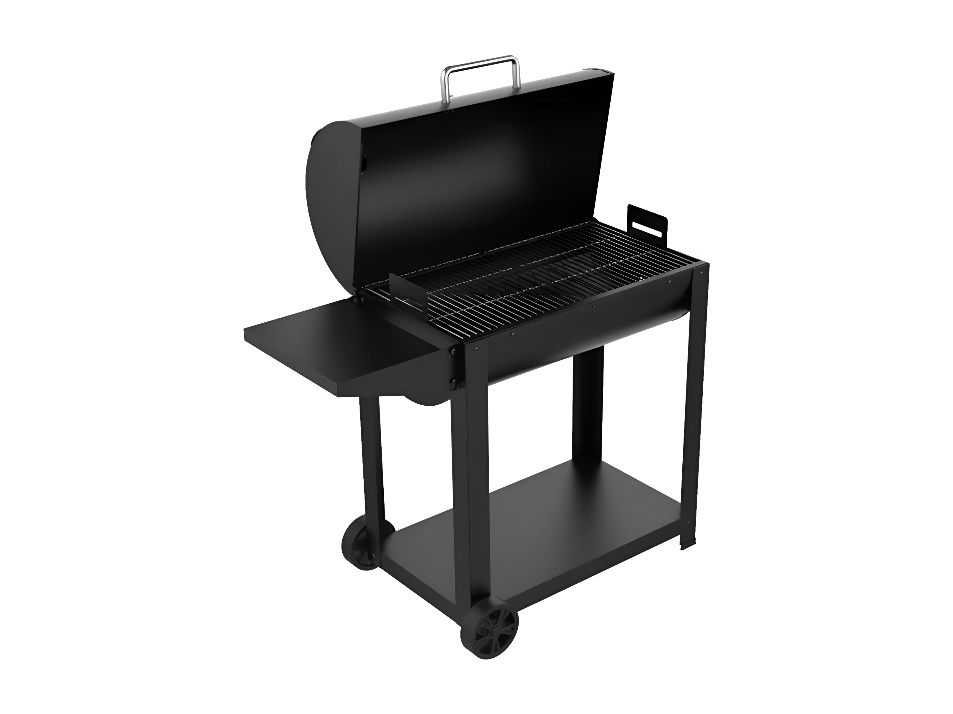 La praticité est au cœur de la conception de ce barbecue : le plateau à charbon est ajustable en hauteur et se retire aisément, simplifiant le nettoyage. Un plateau latéral rabattable et un plateau inférieur dédié aux accessoires augmentent l’espace de travail et le rangement. Pour une maniabilité sans effort, il est équipé de deux roues robustes et d’une poignée solide, permettant un déplacement aisé.