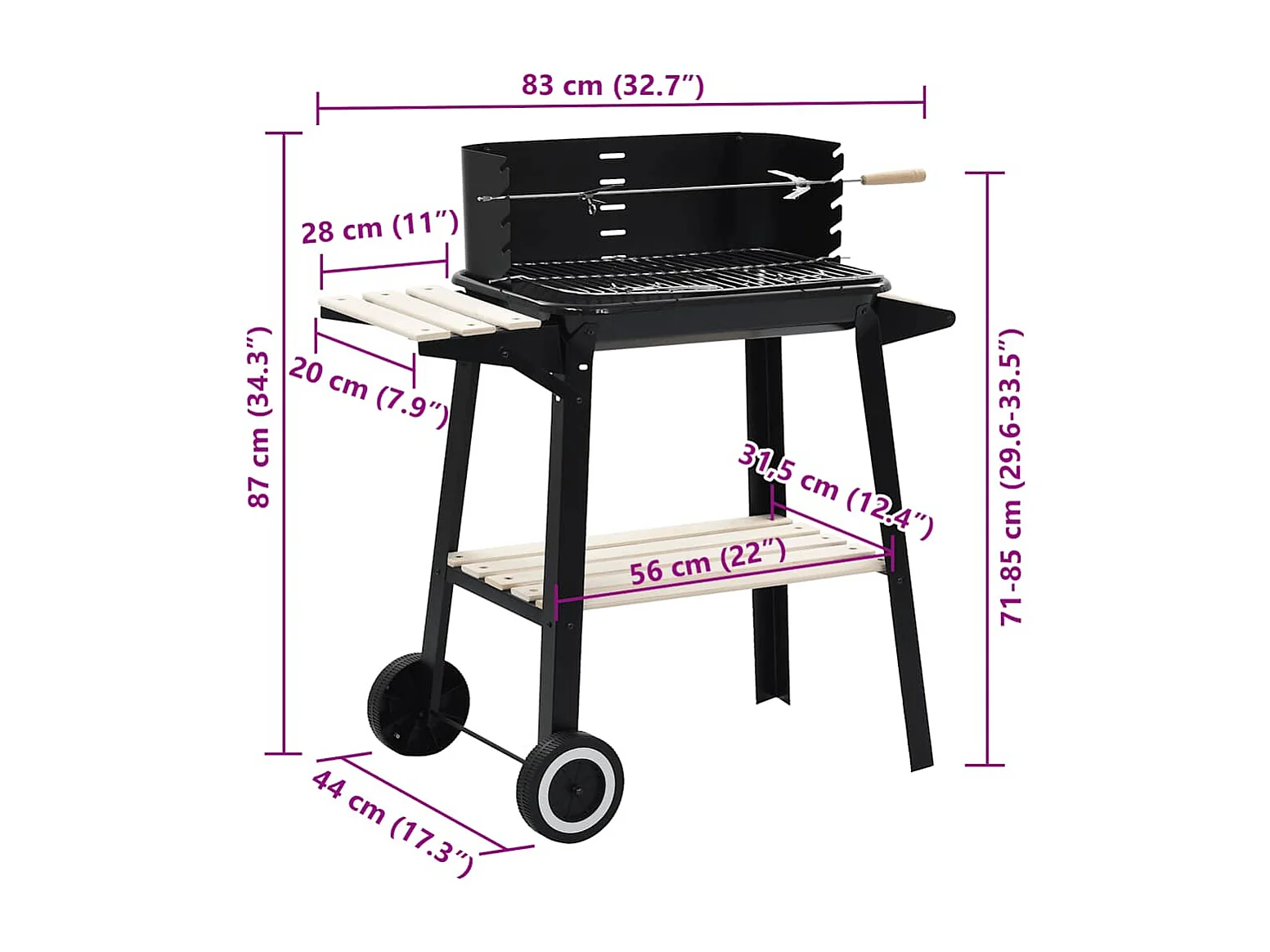 Gril de barbecue au charbon de bois et étagère inférieure Noir