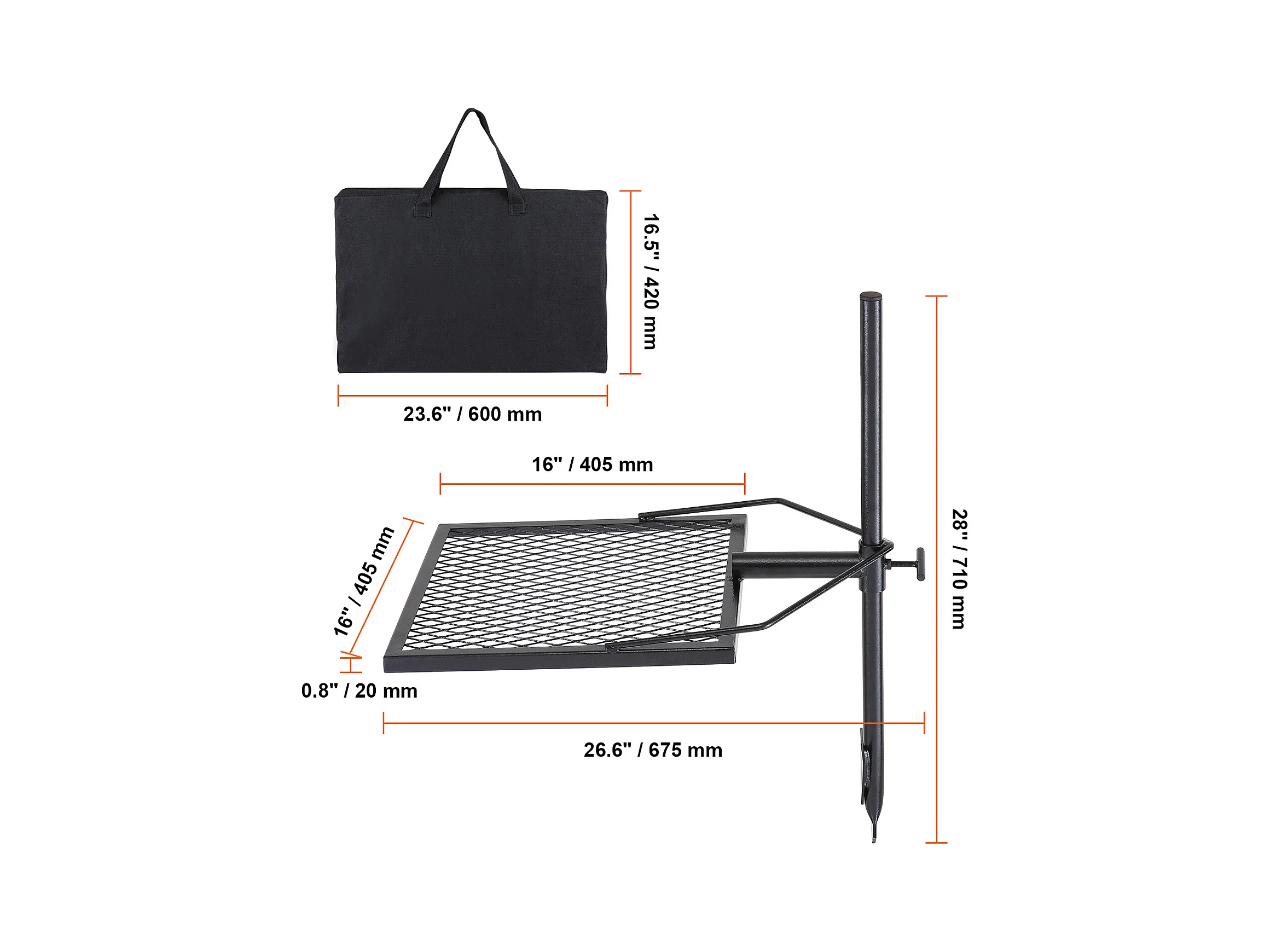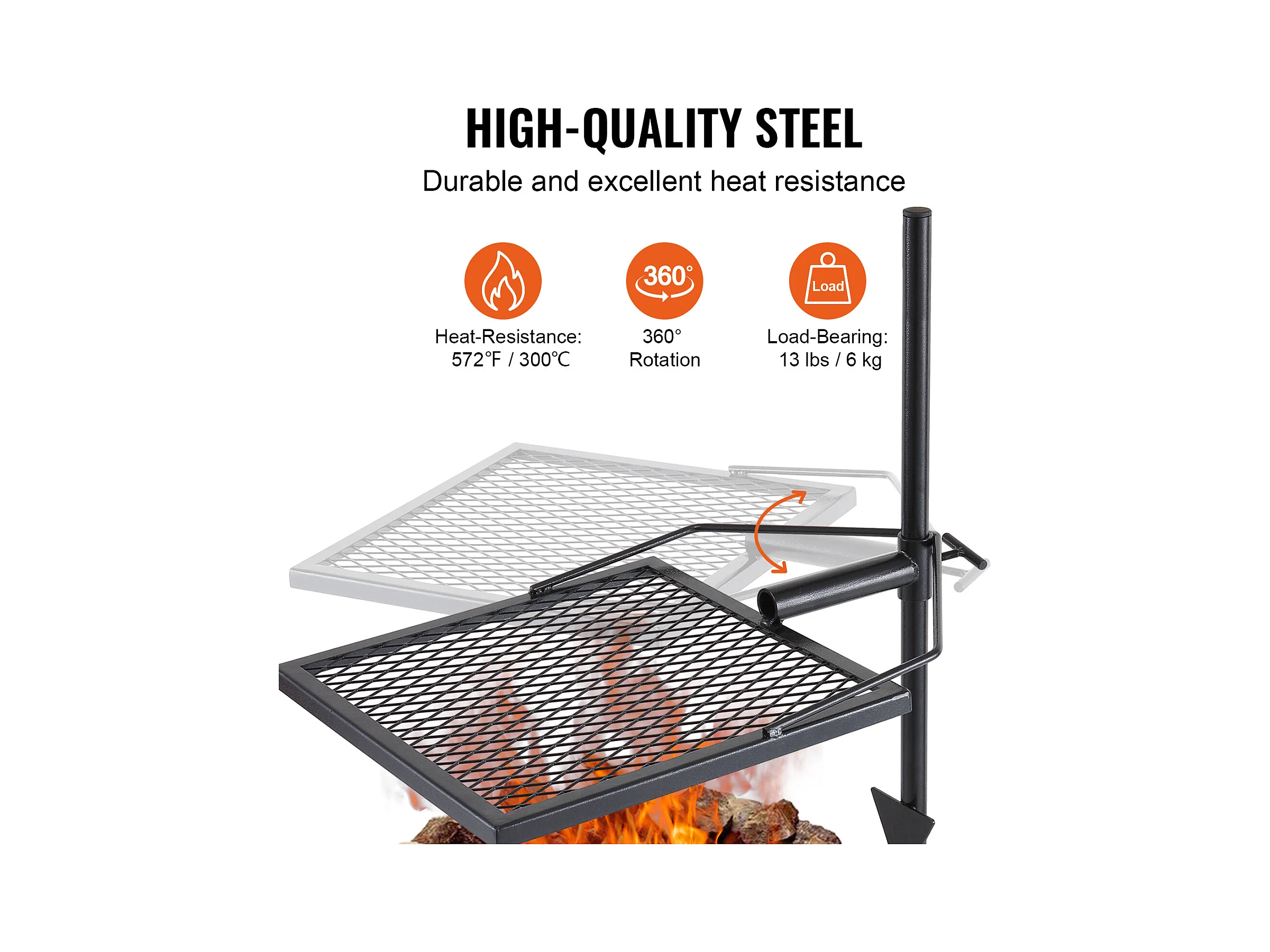 Barbecue, SucceBuy Barbecue de Camp Pivotant, Acier Robuste, Grille de Cuisson Réglable pour Feu Ouvert, Extérieur