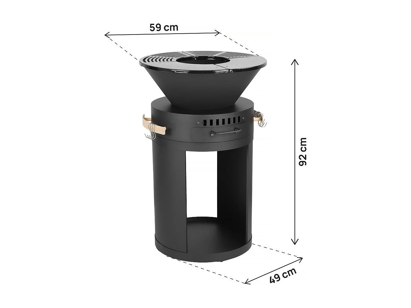 Barbecue plancha brasero a charbon et bois "Cesar" - 49 x 49 x 92 cm - Noir