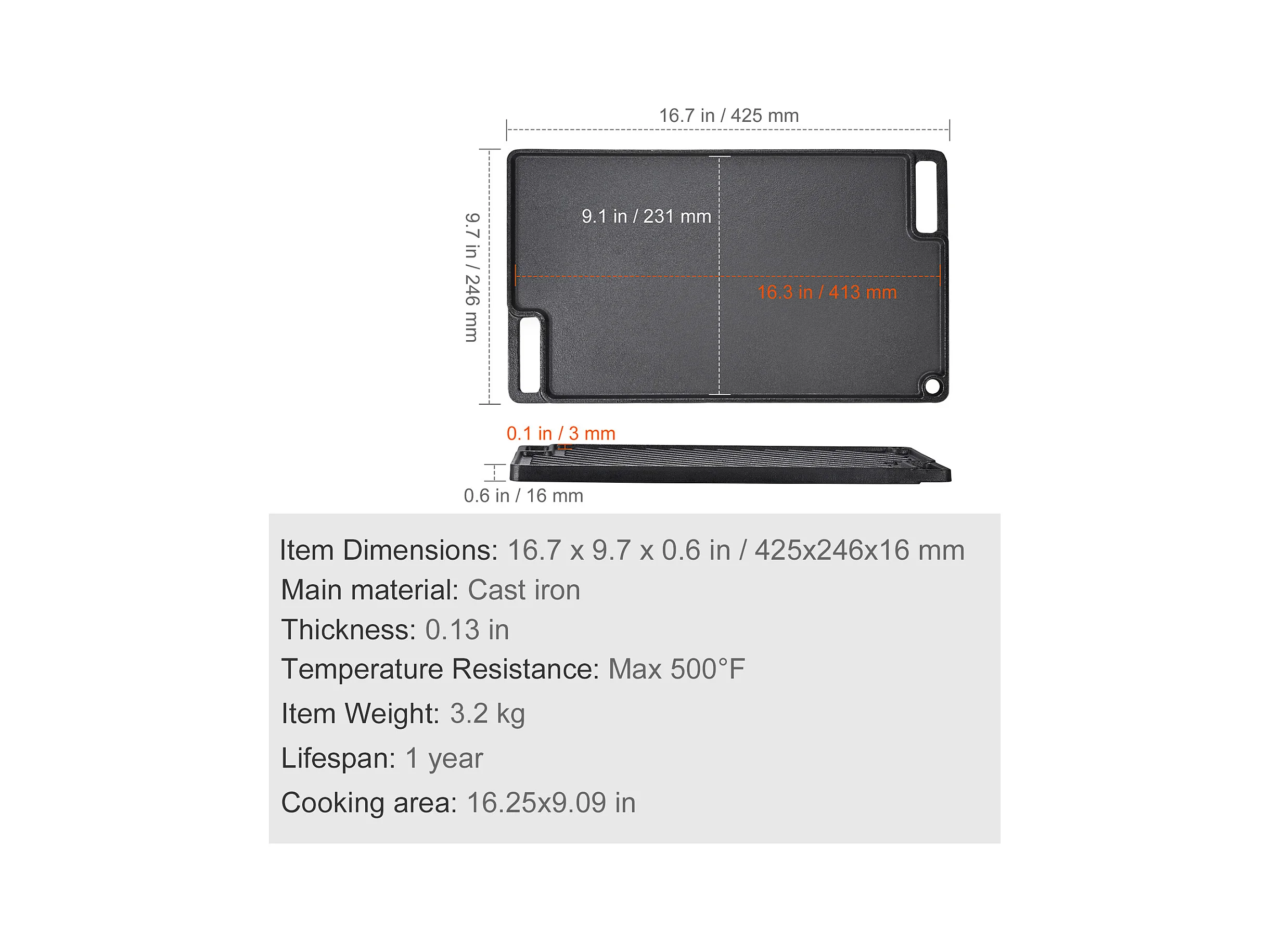 Barbecue Plaque SucceBuy, 25 x 42 cm, Grille de Cuisson Réversible en Fonte pour Cuisinière à Barbecue