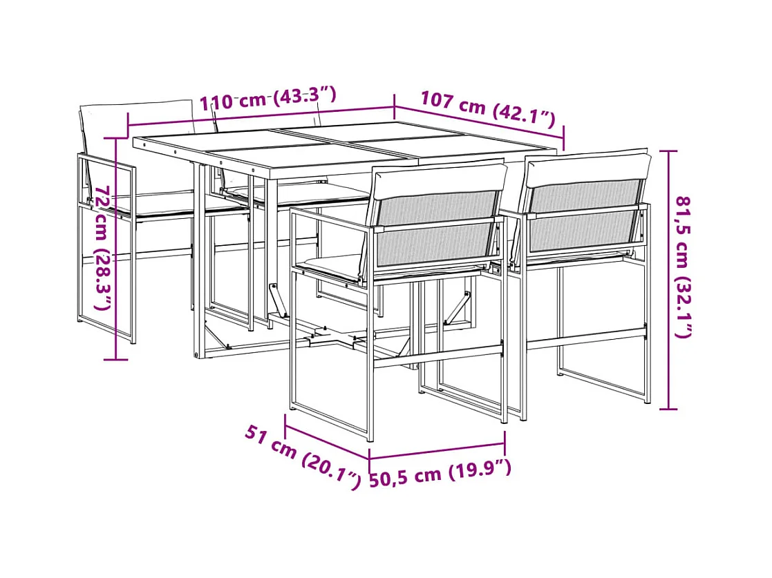 Ensemble Table et chaise de jardin 4 places