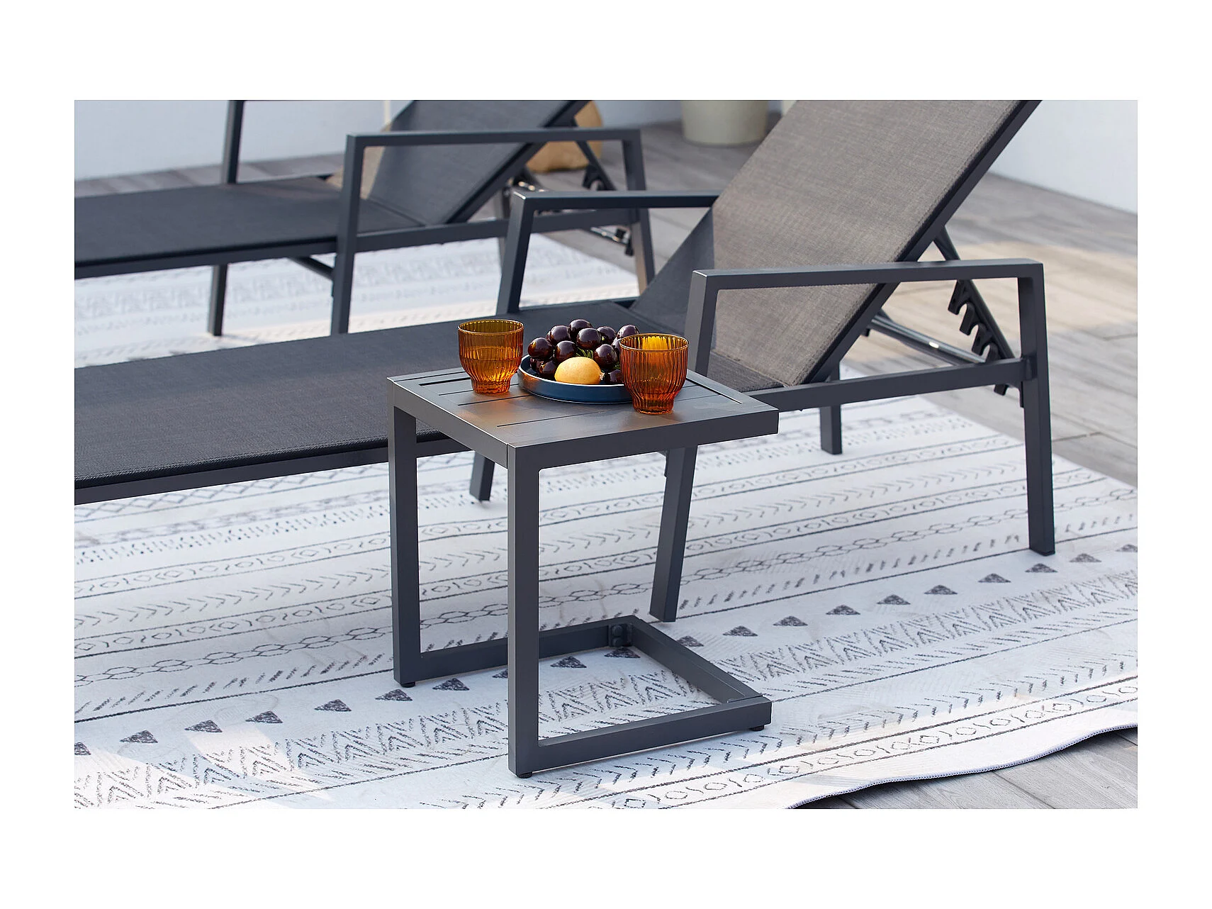 Lot de 2 transats et une table d'appoint noir BARI