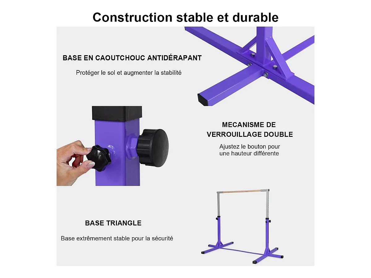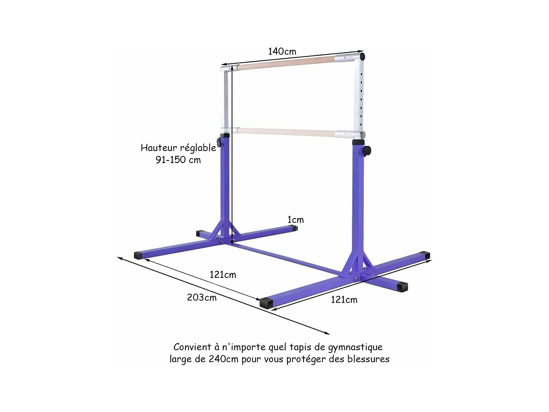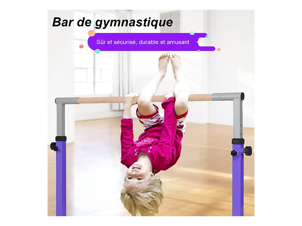 Barre de Gymnastique en Acier Hauteur Réglable de 91 à 150CM Charge 100KG pour Ecole, Maison, Jardin Diamètre 4CM Violet