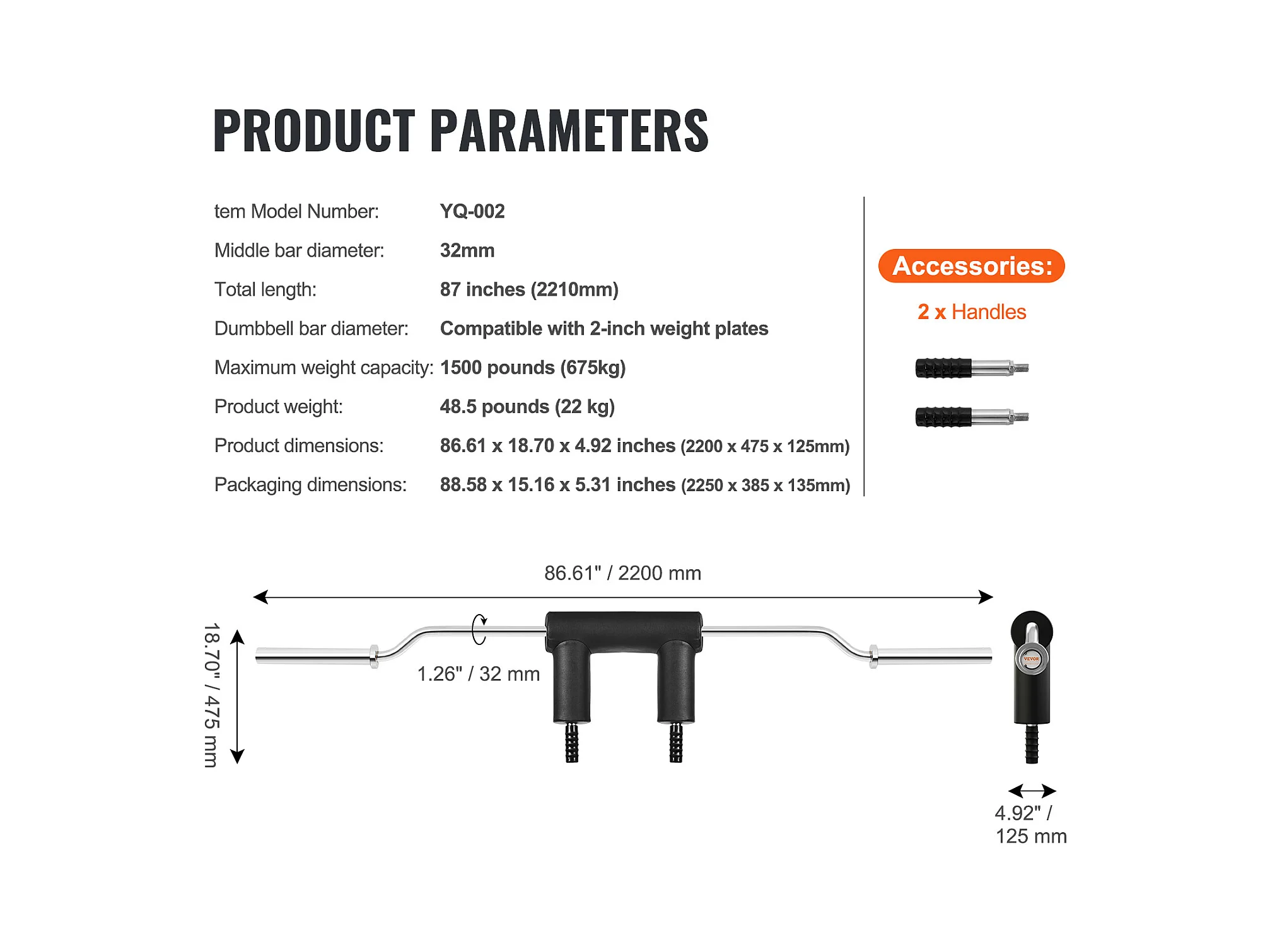 Barre d'Haltères de Sécurité SucceBuy pour l'Haltérophilie de Fitness, 221 cm