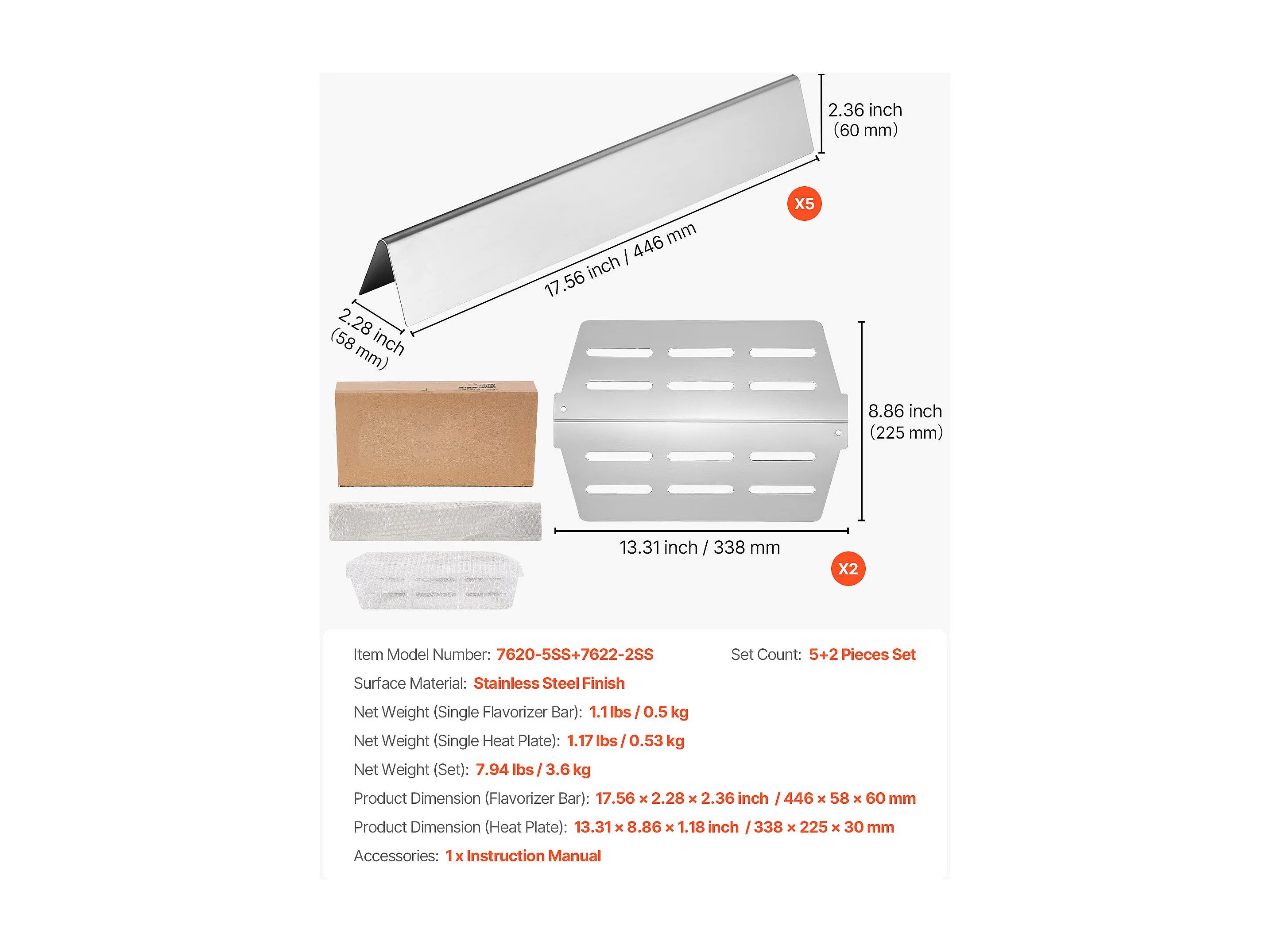 Barres Cache-brûleurs et Diffuseur SucceBuy de Chaleur pour Barbecue 7PCs, Déflecteur de Graisse pour Brûleur 44,6 cm, pour Barbecues Weber Genesis Série 300