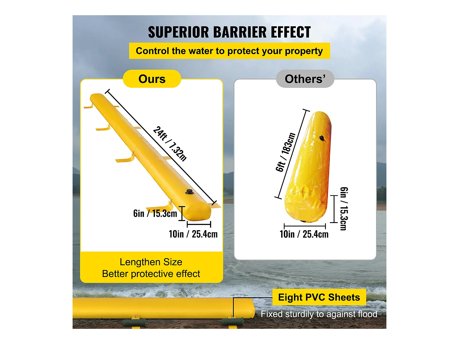 Barrière Anti-Inondation SucceBuy, 731 x 15 cm, pour la Déviation de l'Eau, Légère et Réutilisable