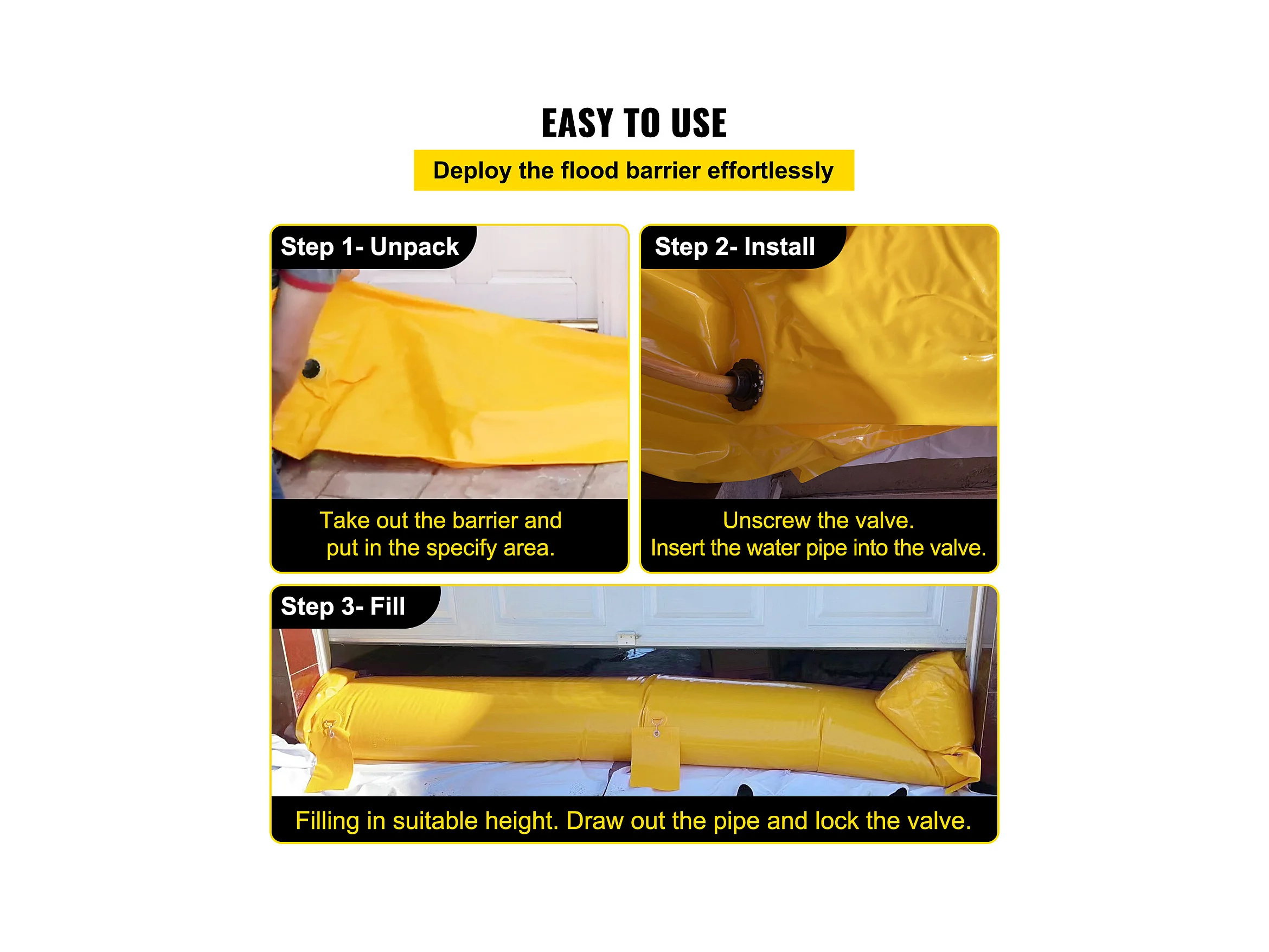 Barrière Anti-Inondation SucceBuy, 4 Pièces, 122 x 25 x 17 cm, Portable et Facile à Utiliser pour Maison, Entrée, Allée, Jaune