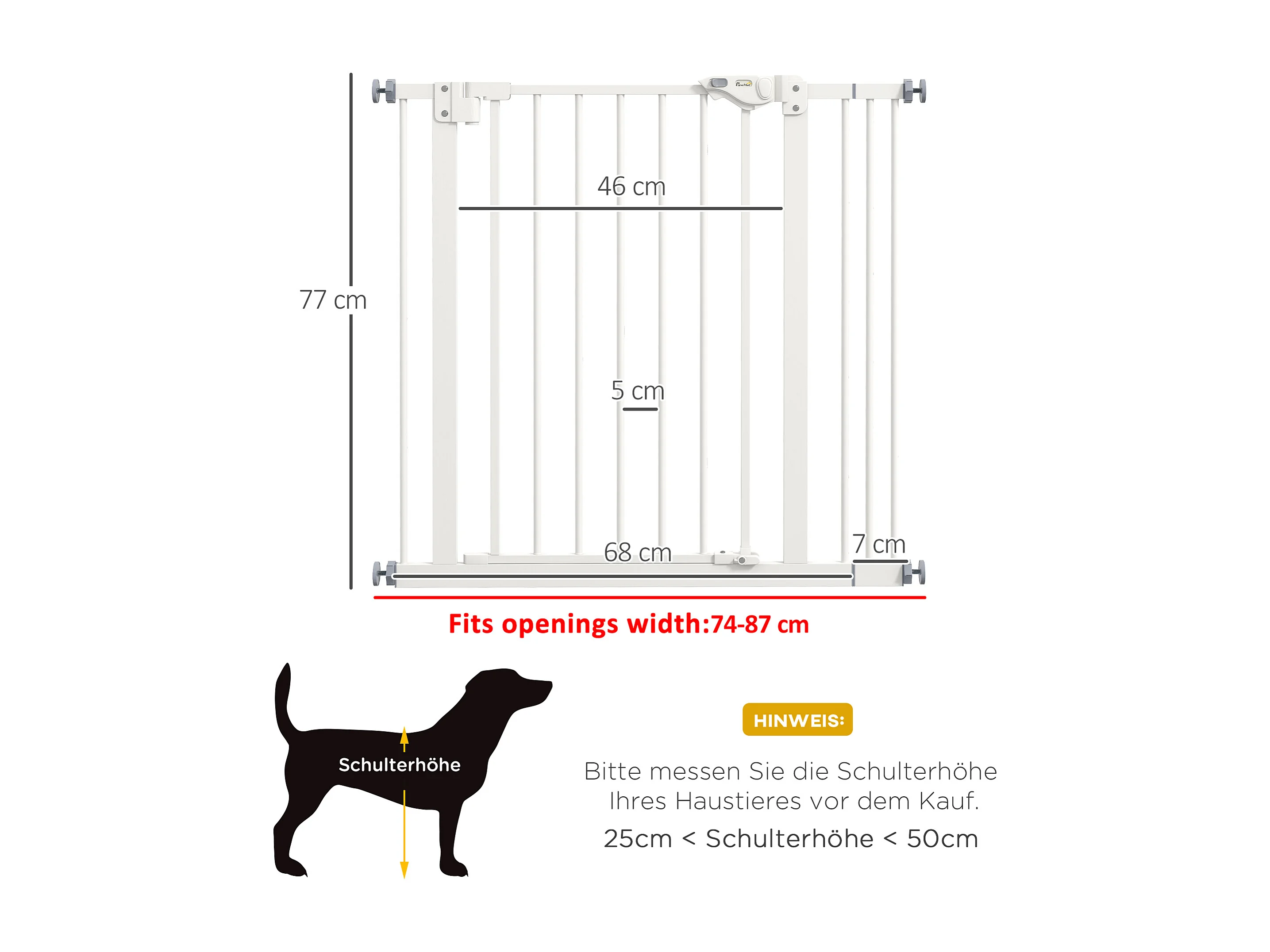 Barrière de sécurité pour chiens et chats, réglable sans perçage, métal et plastique, blanc (74-87x2x77 cm)