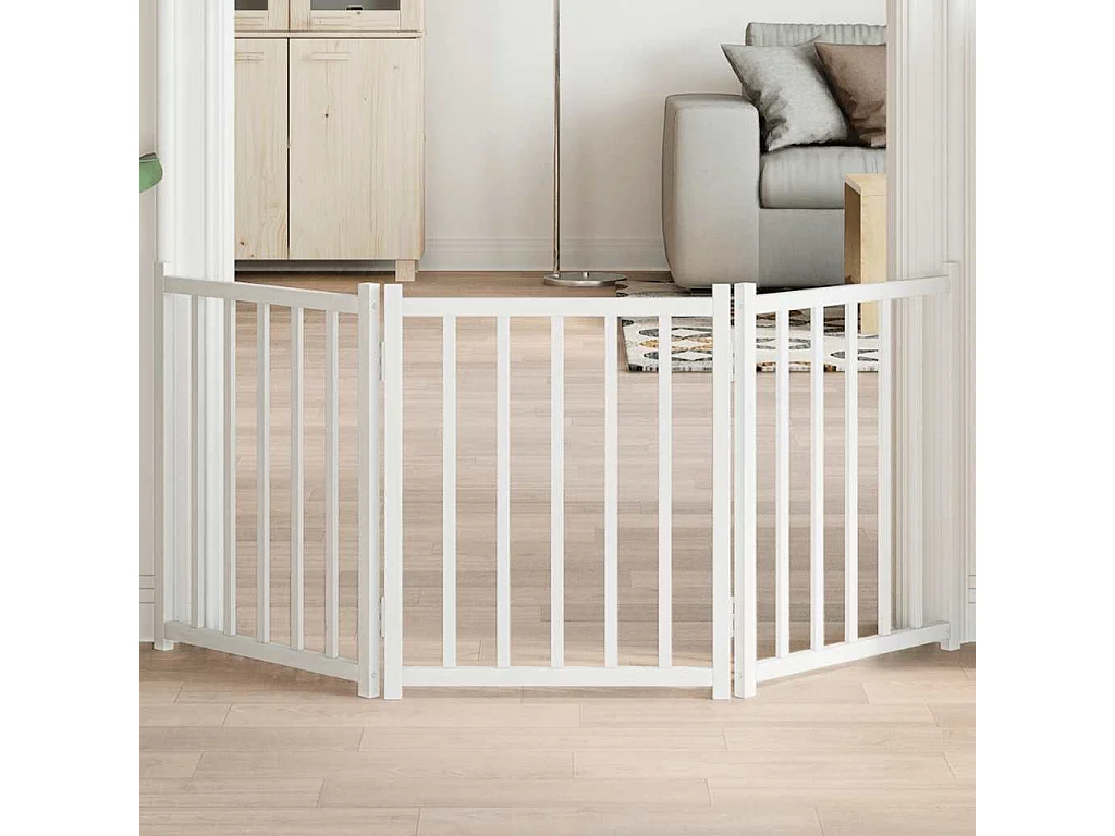 Barrière pour chiens et porte 6 panneaux blanc bois de peuplier