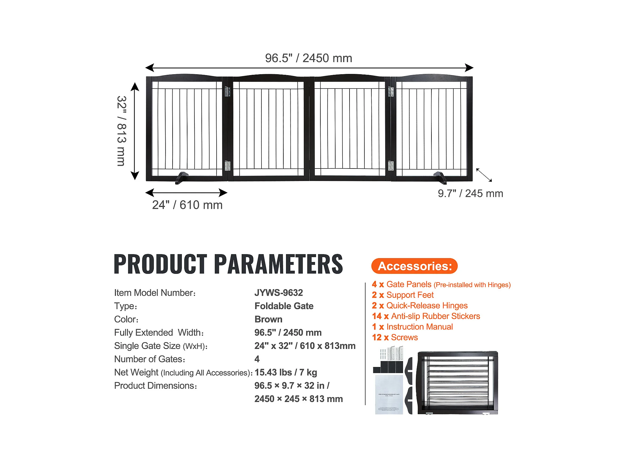 Barrière pour Chien Pliable SucceBuy,81 x 245cm, Autoportante, pour Passages Larges et Étroits, Utilisation Intérieure, Marron