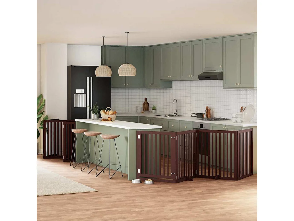 Barrière pour chien porte pliable 10 panneaux bois de peuplier