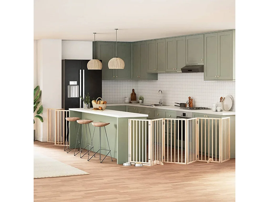 Barrière pour chien porte pliable 12 panneaux bois de peuplier