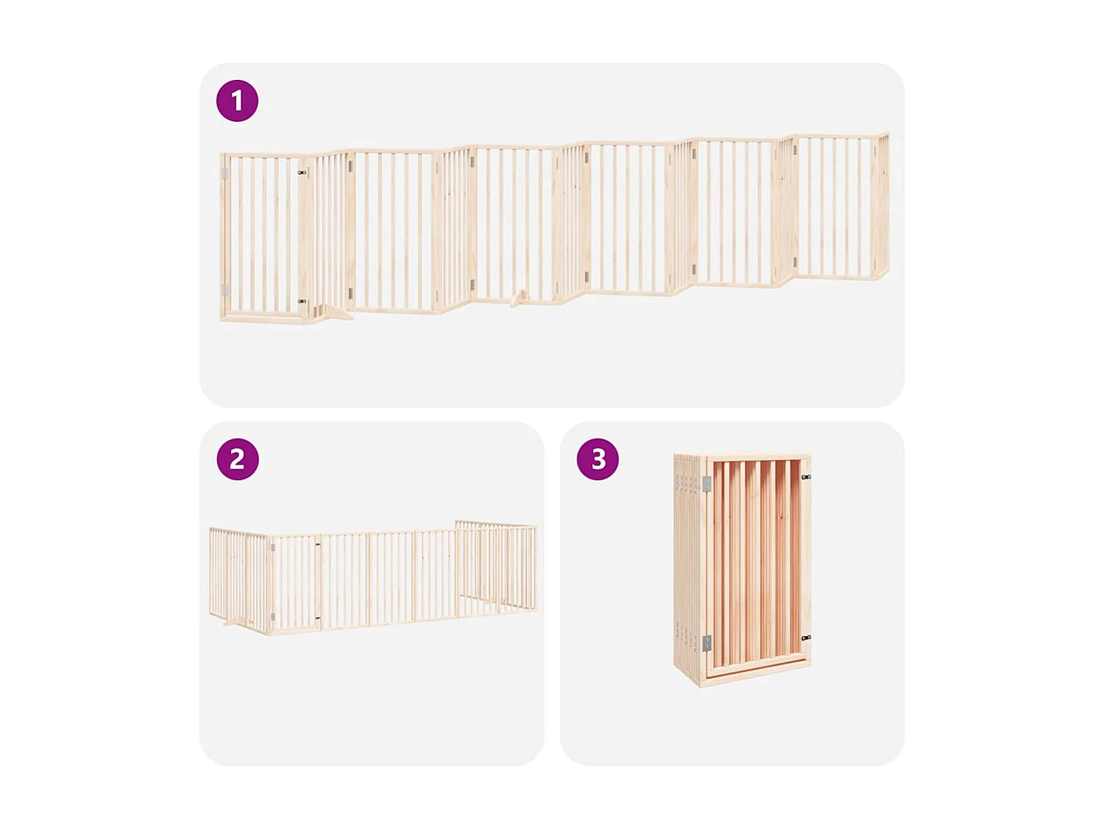 Barrière pour chien pliable 3 panneaux 150 cm bois de peuplier