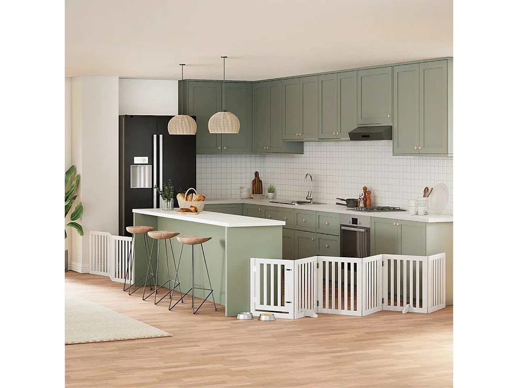 Barrière pour chien porte pliable 12 panneaux bois de peuplier