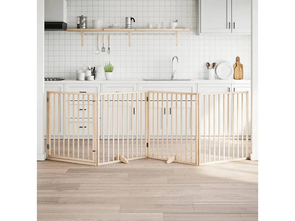 Barrière pour chien porte pliable 8 panneaux bois de peuplier