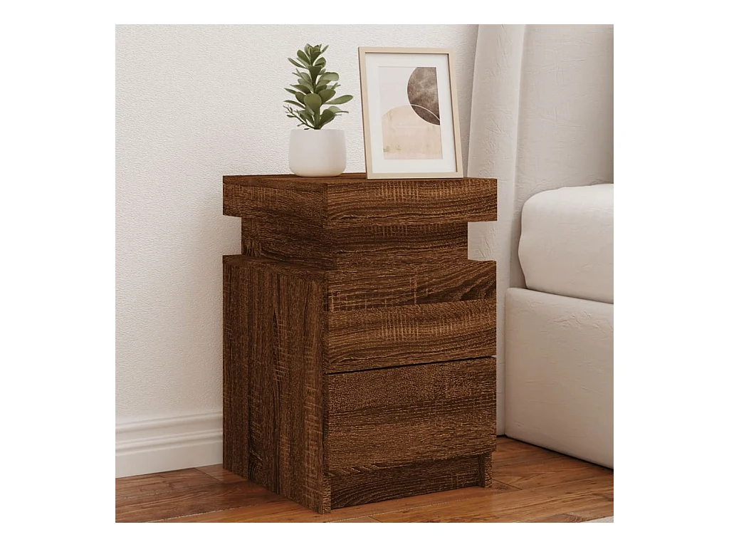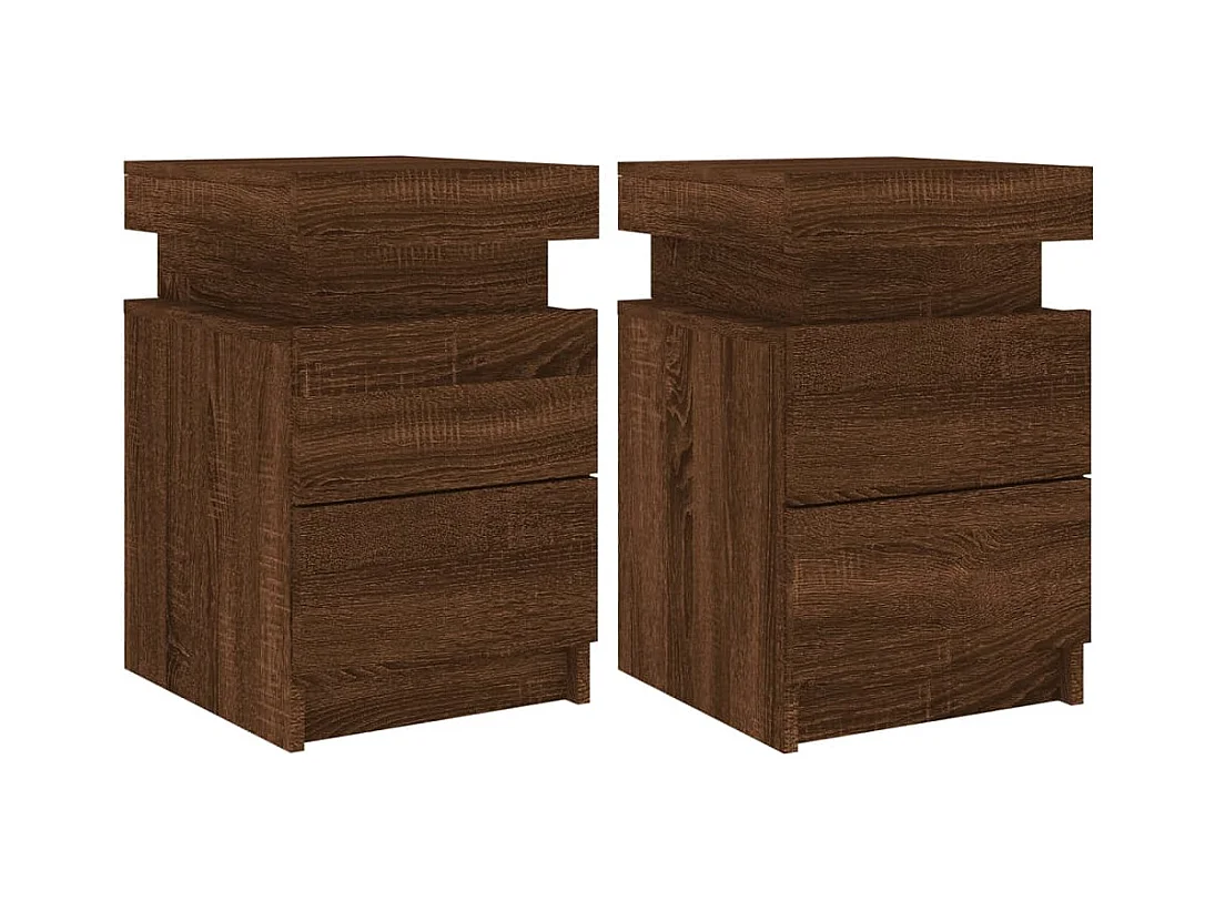 Bishop Tables de chevet et lumières LED 2 pcs chêne marron 50x40x45 cm
