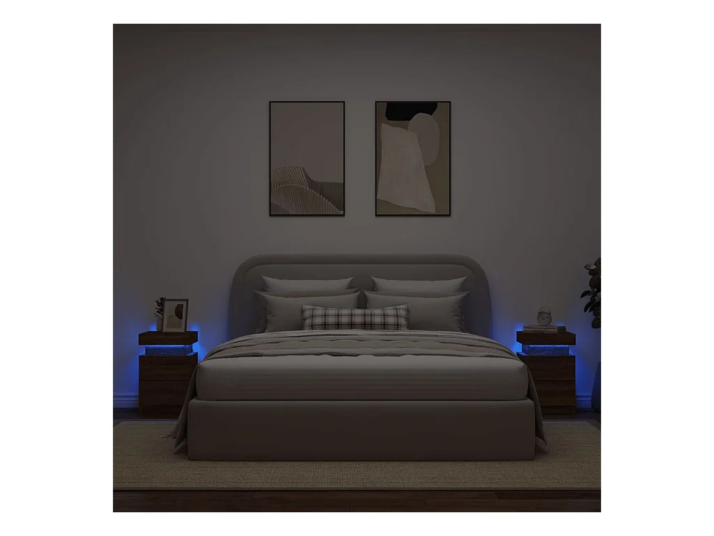 Simo Armoires de chevet avec lumières LED 2 pcs chêne fumé