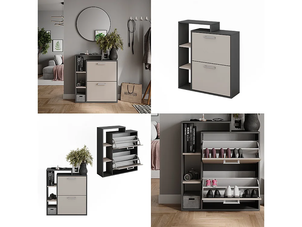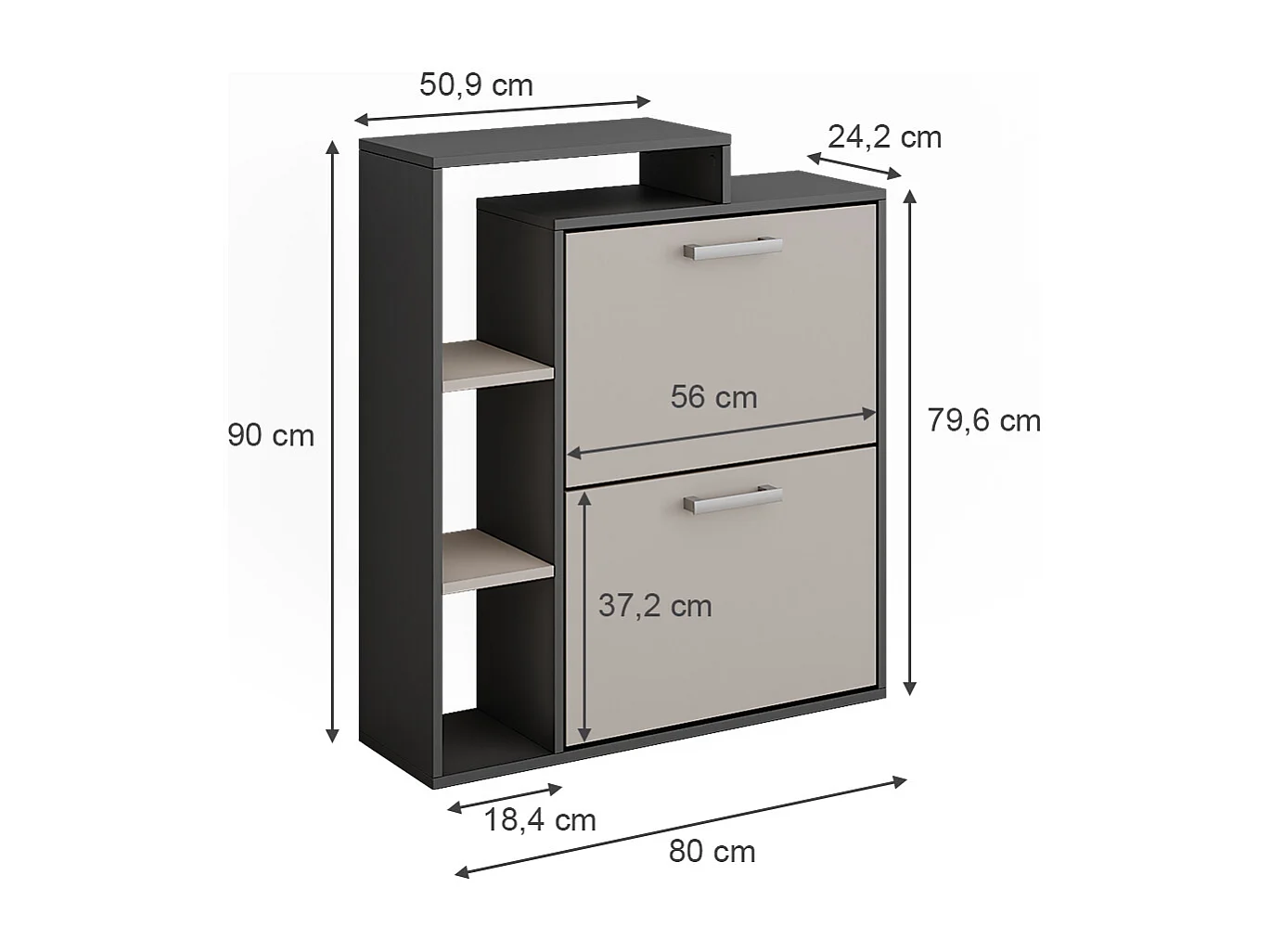 Basculeur à chaussures anthracite/gris 80x24.2x90 orlando