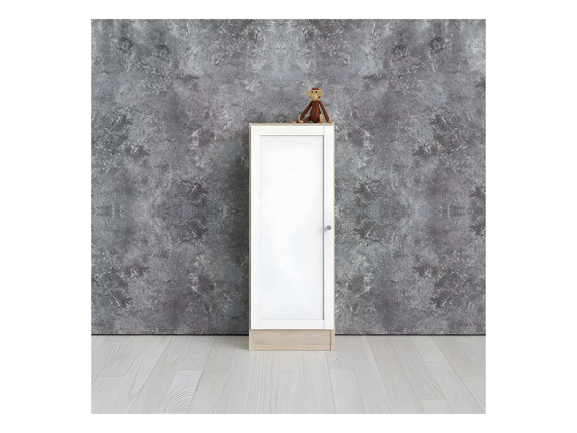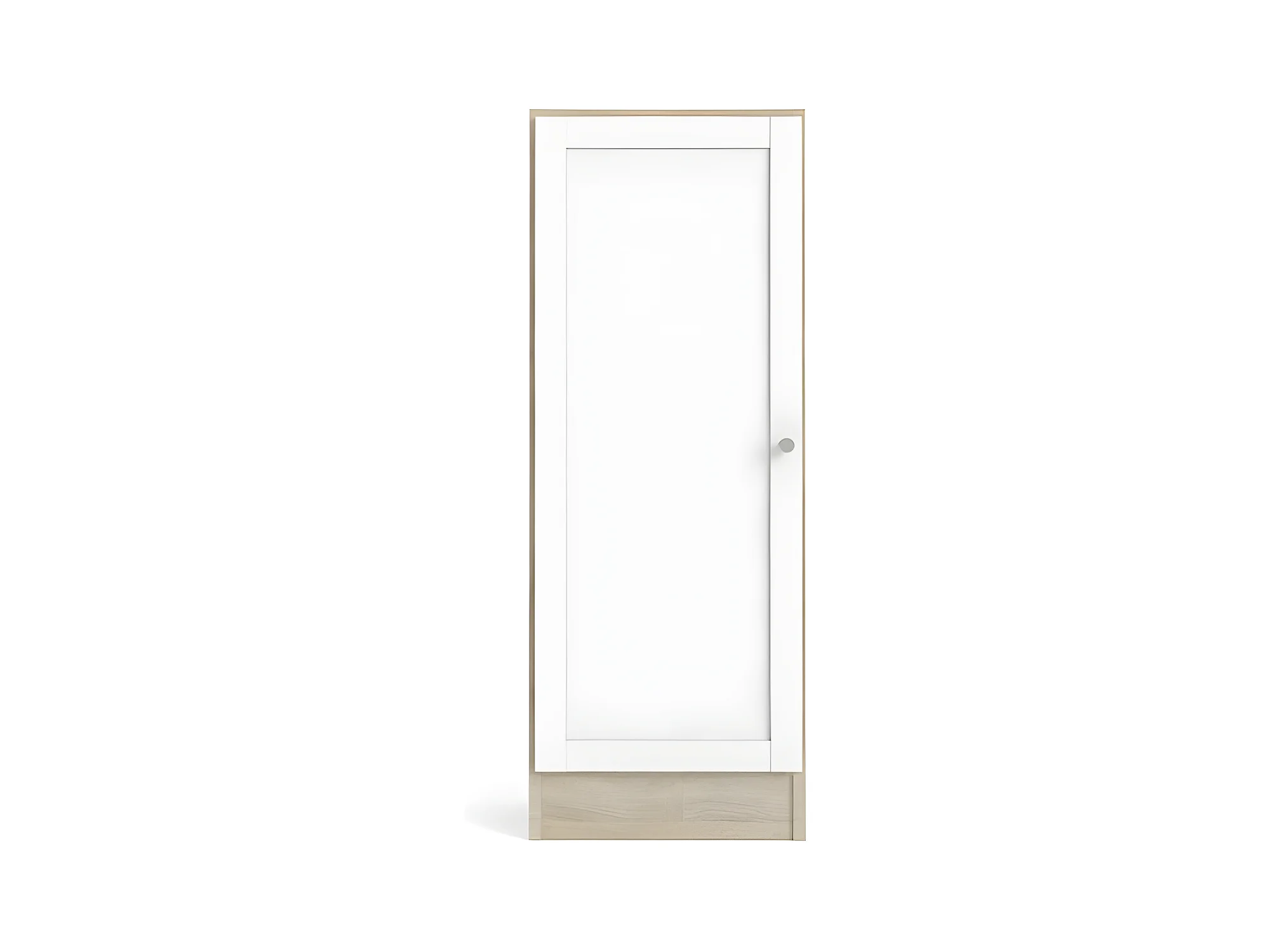 Base Étagère 1 tablette de rangement 1 porte, finition chêne structuré, blanc.