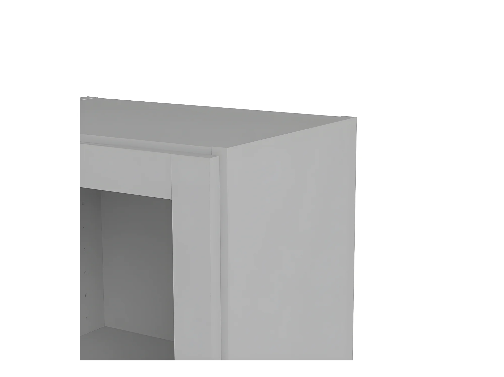 Base Étagère, 1 porte vitrée cadre, blanc, imitation chêne structuré.