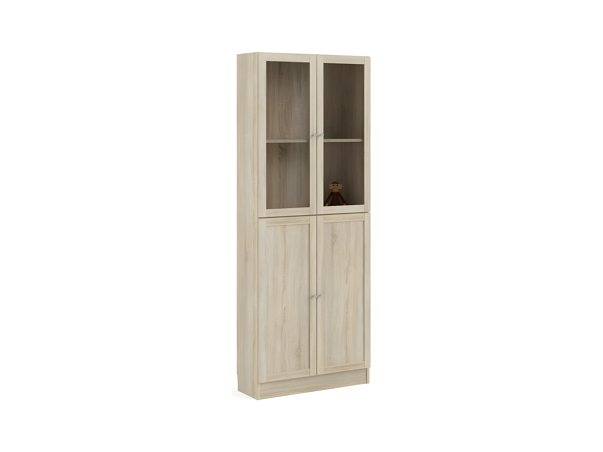Base Étagère 2 portes vitrées et 2 portes, finition chêne structuré.