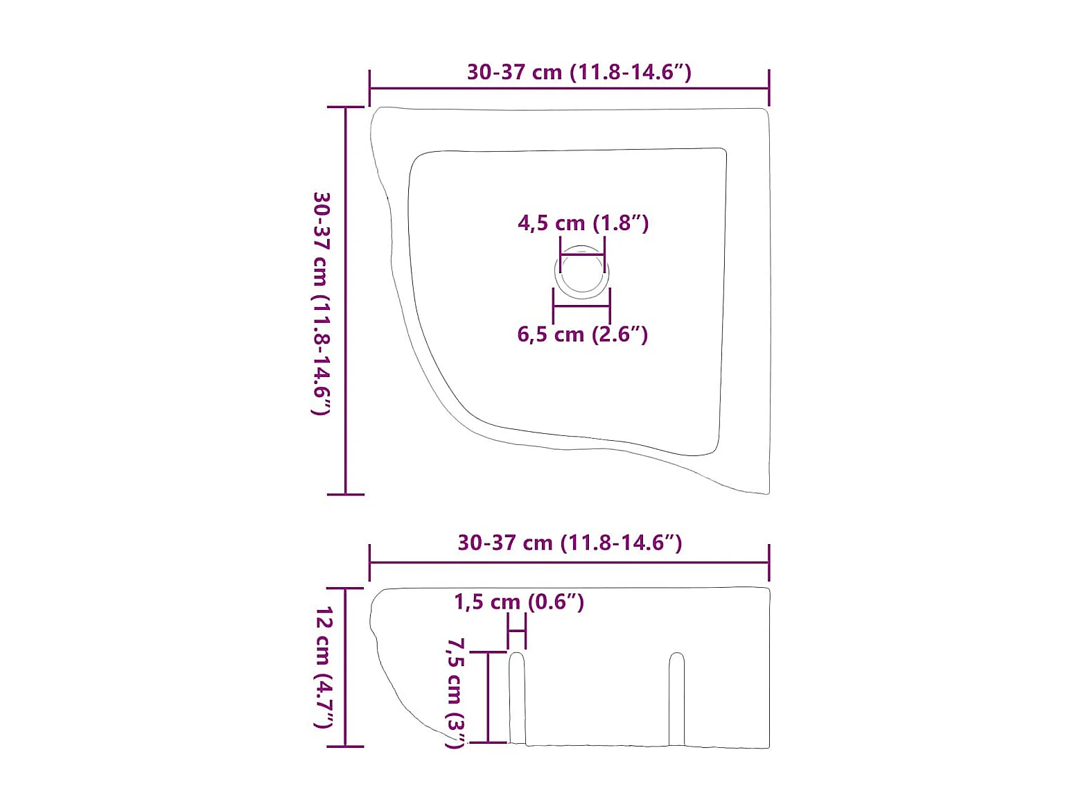 Bassin d'angle suspendu au mur Gris (30-37) x (30-37) x 12 cm