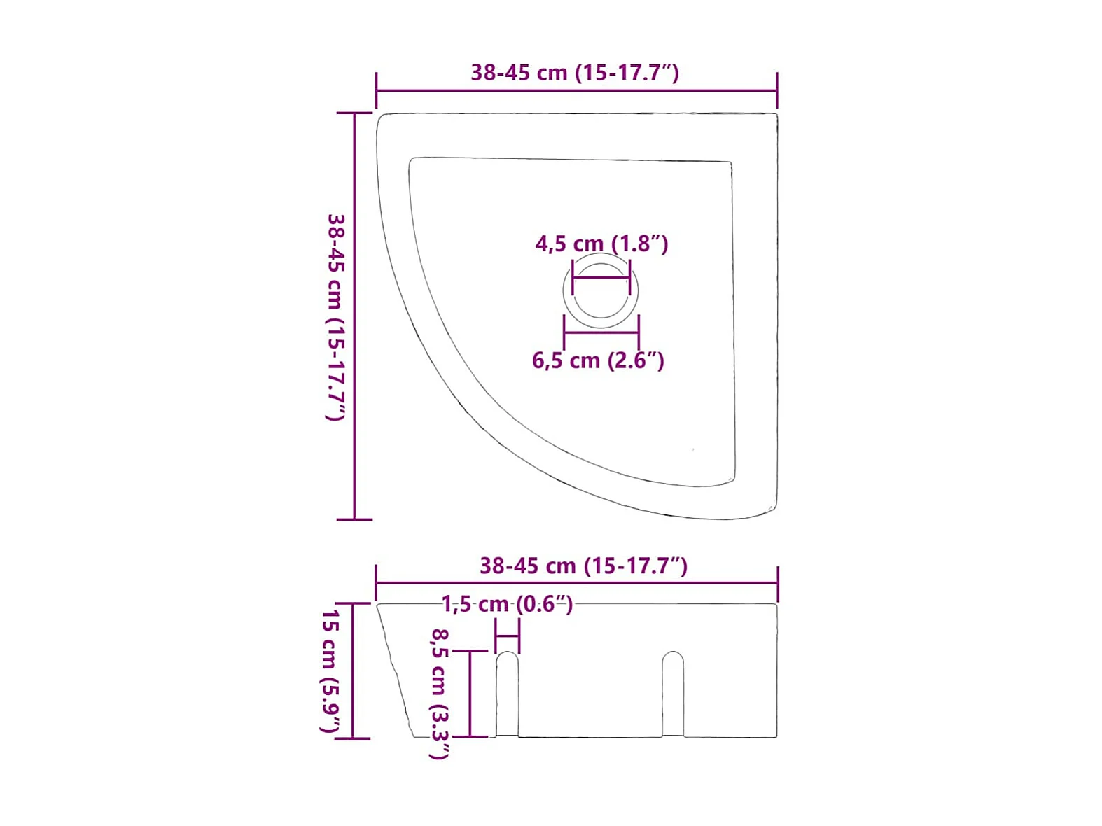 Bassin d'angle suspendu au mur Gris (38-45) x (38-45) x 12 cm