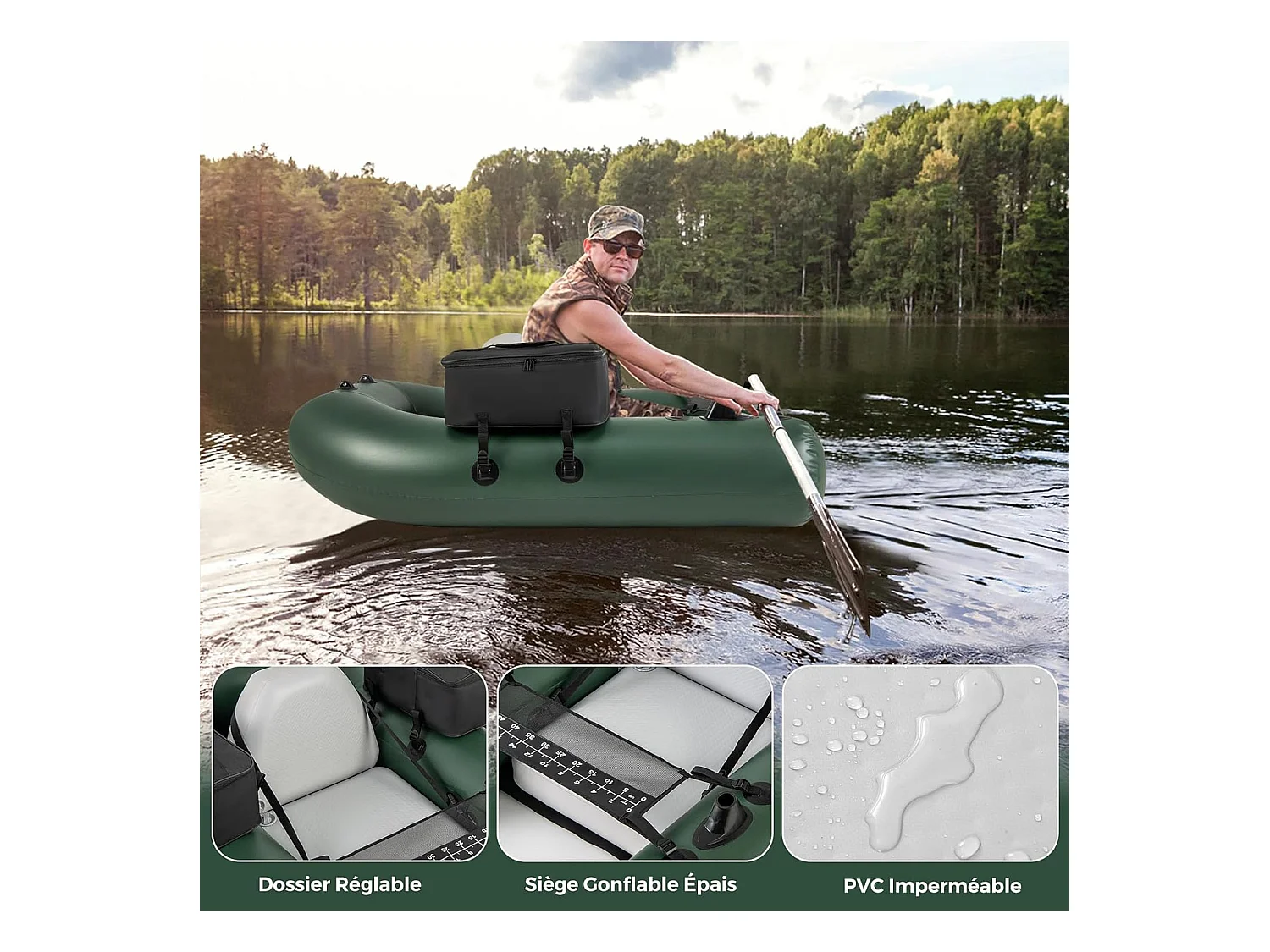 Bateau de Pêche Gonflable avec Dossier Pagaie, Bateau Gonflable avec Règle à Poisson, Rangement Palmes Pompe Sangles de Sac à Dos, Charge 150 KG, Camouflage