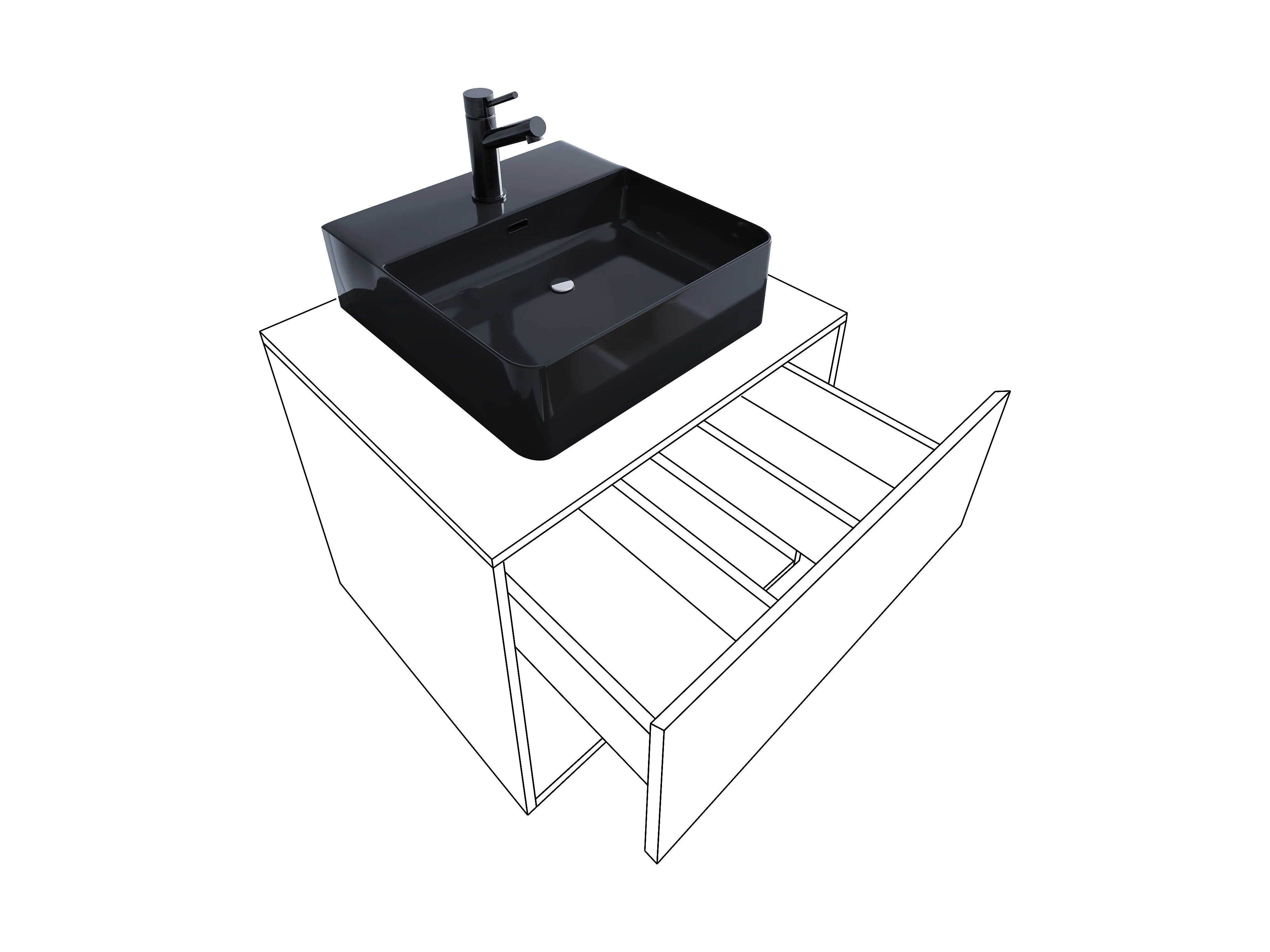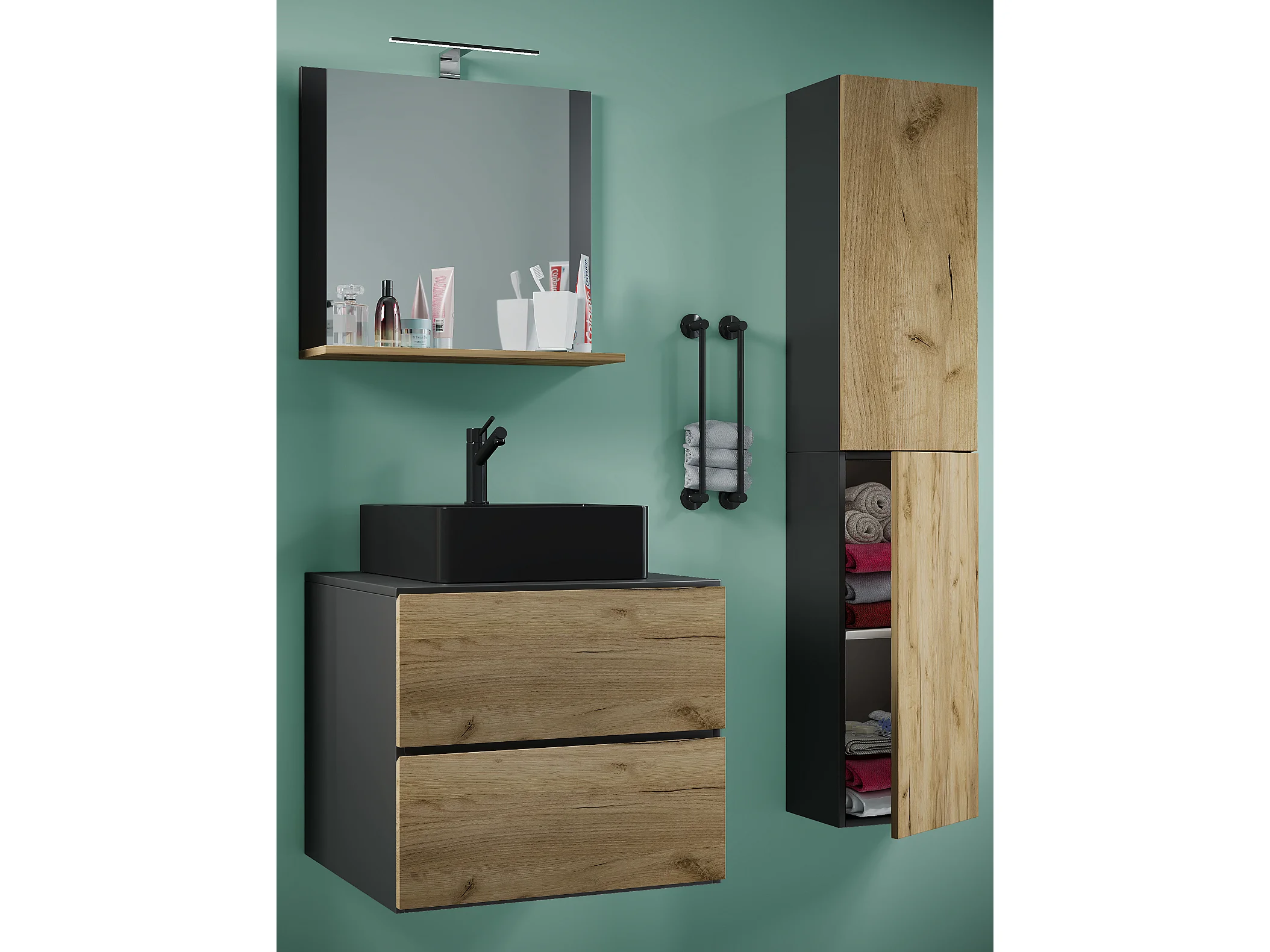 Bathroom furniture washbasin Lendas Anthracite / honey oak H. 150 x W. 93 x D. 52 cm