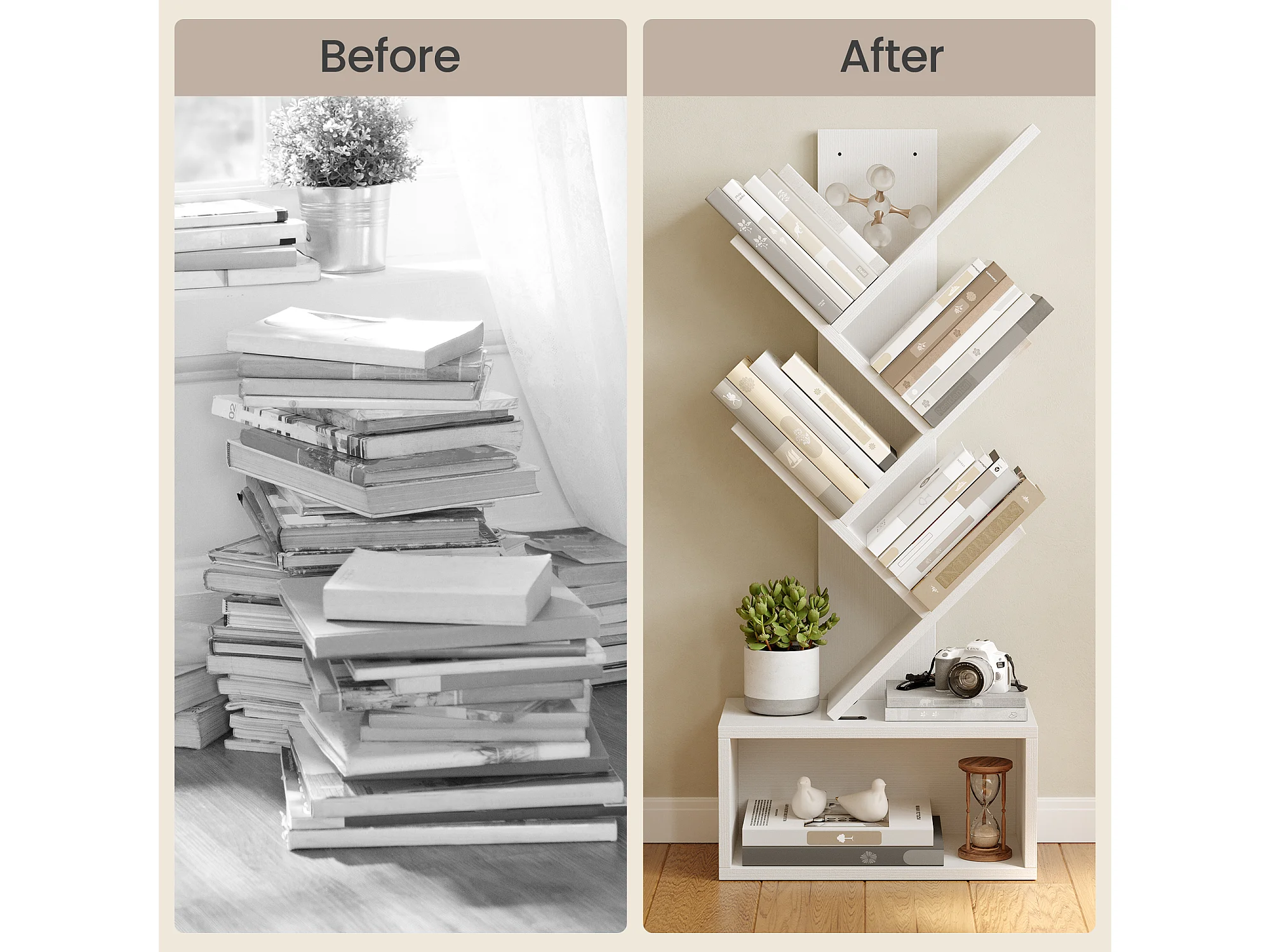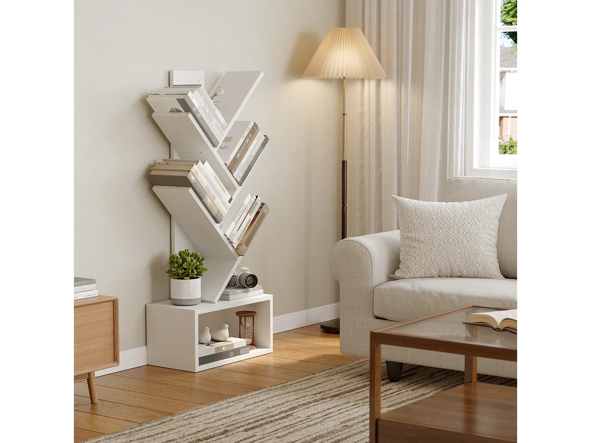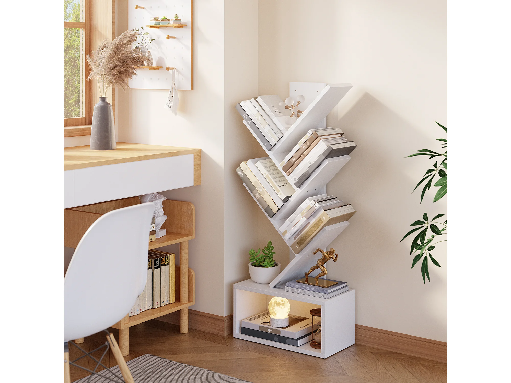 Bealife Bibliothèque 5 Niveaux Étagère de Rangement 1 Casier Arbre Livre CD Magazine Salon Chambre Enfant Blanc