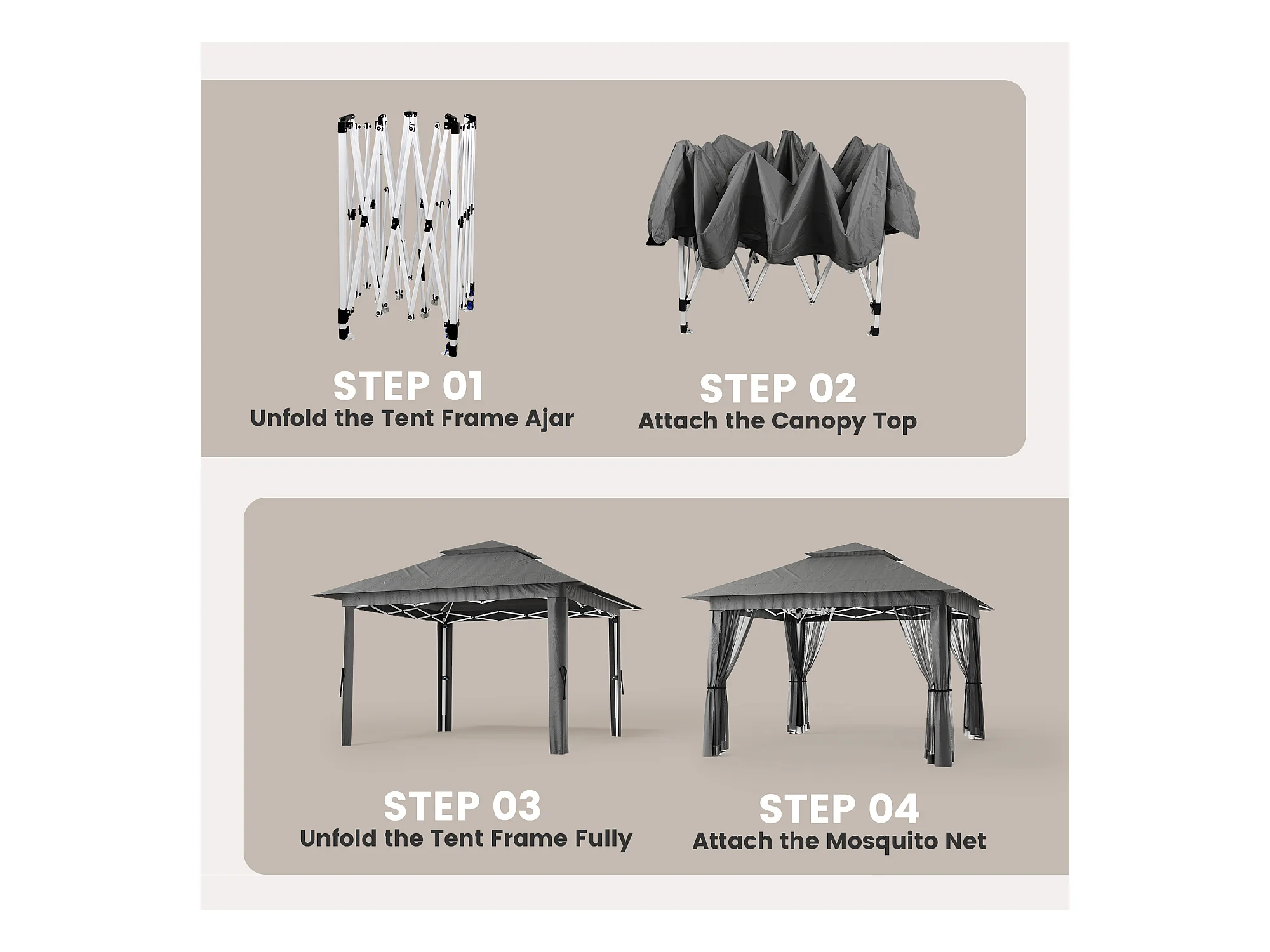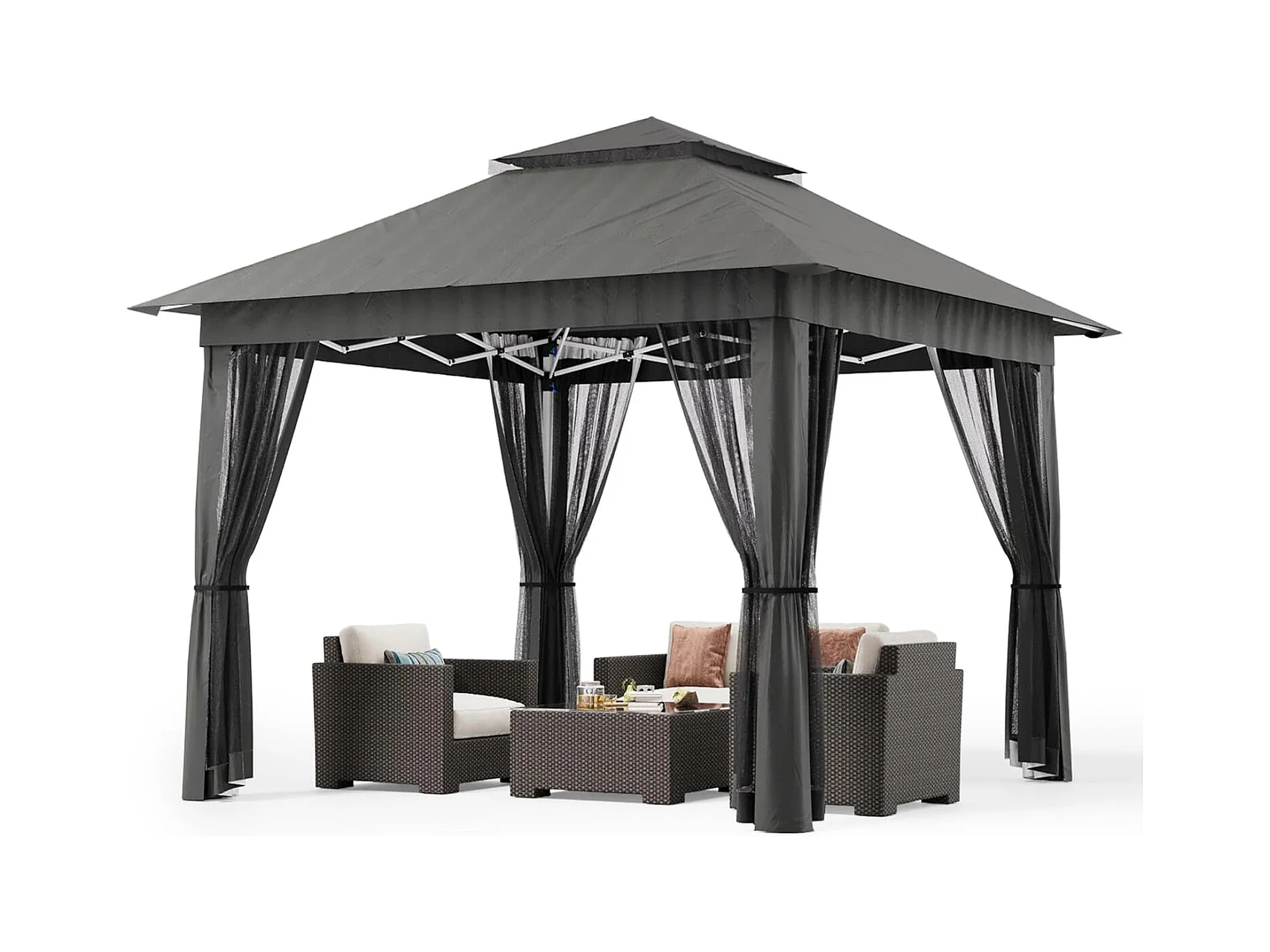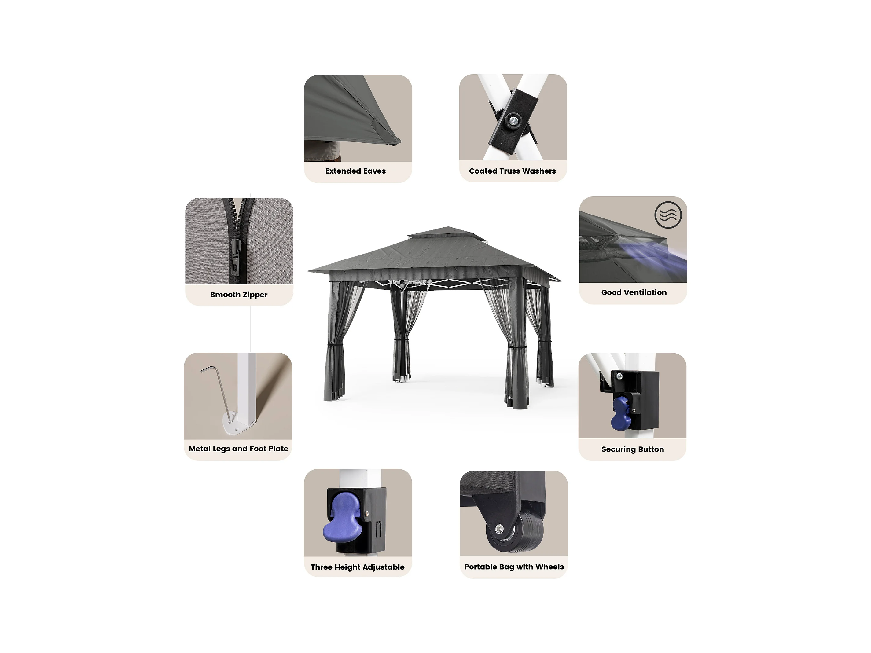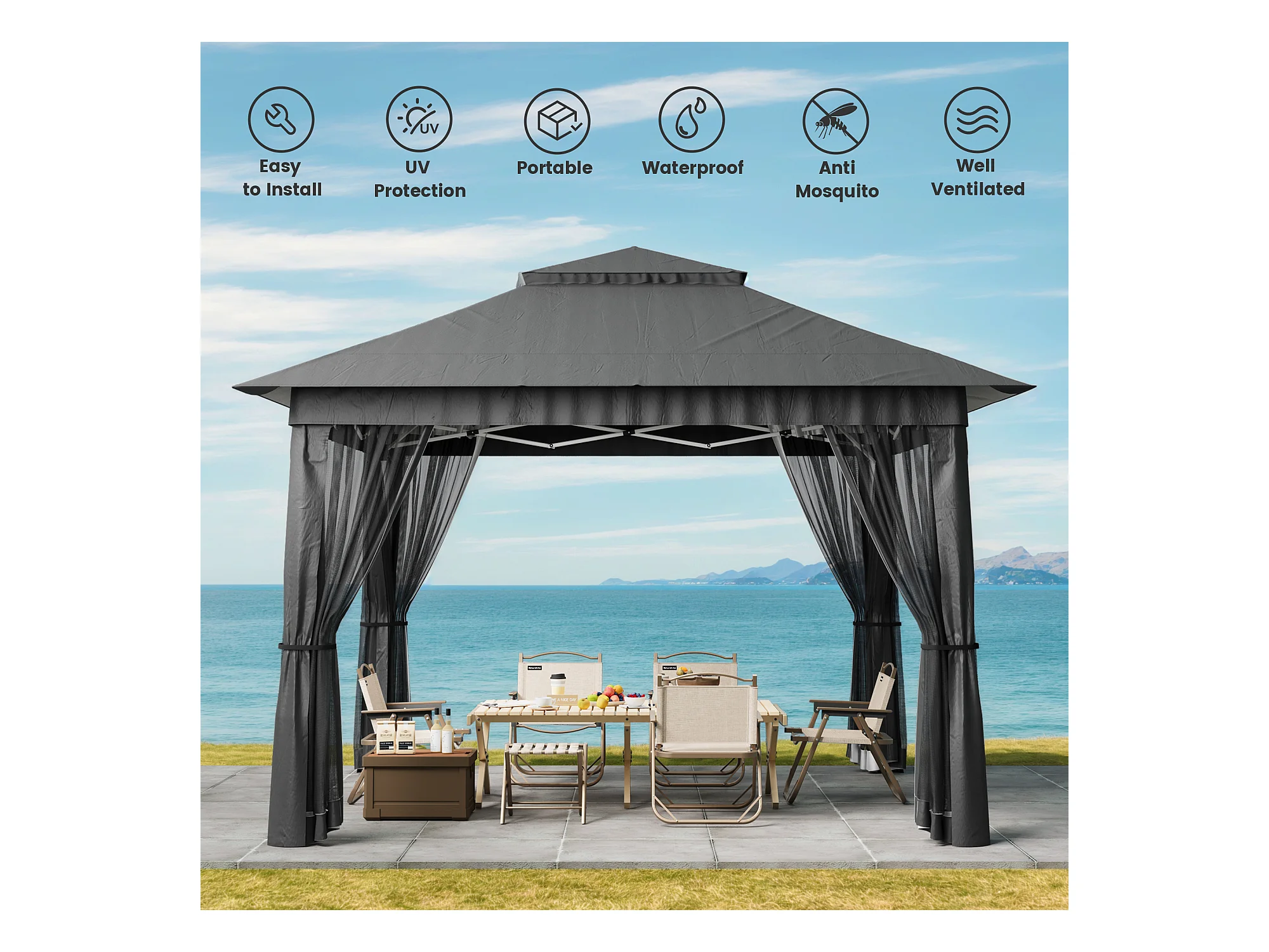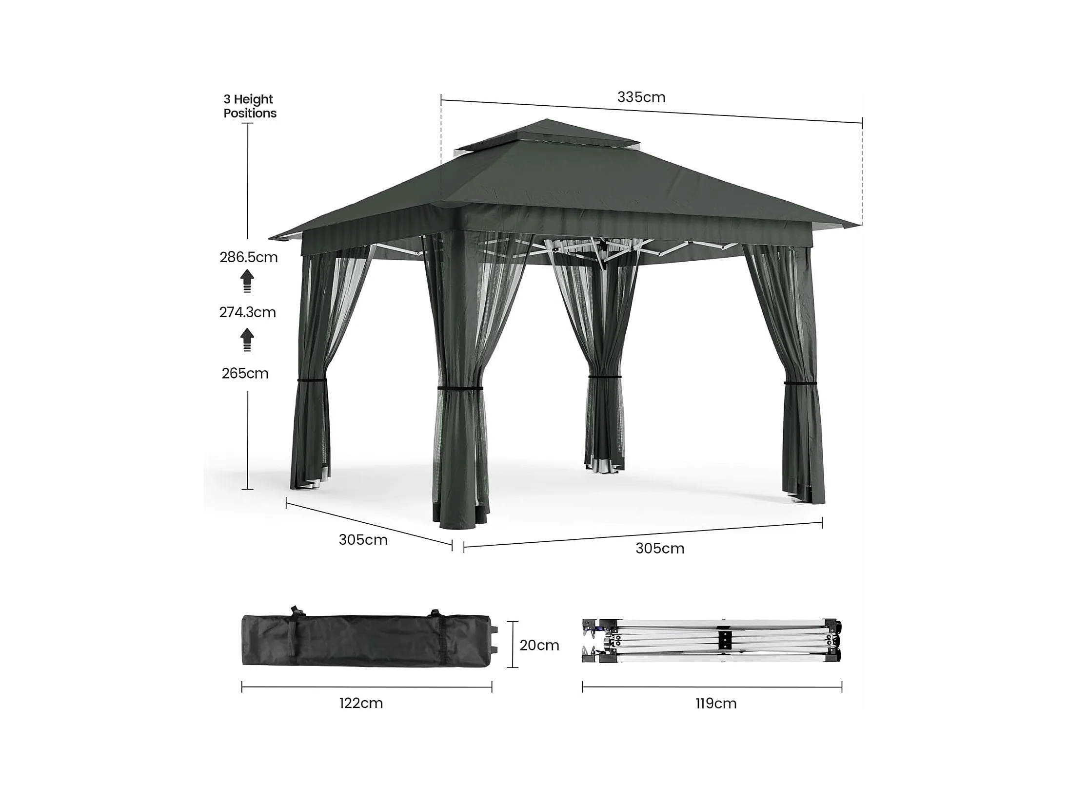 Bealife Tonnelle de Jardin Pliable, 3,35 m x 3,35 m, Grand Espace, Couleur Gris Foncé