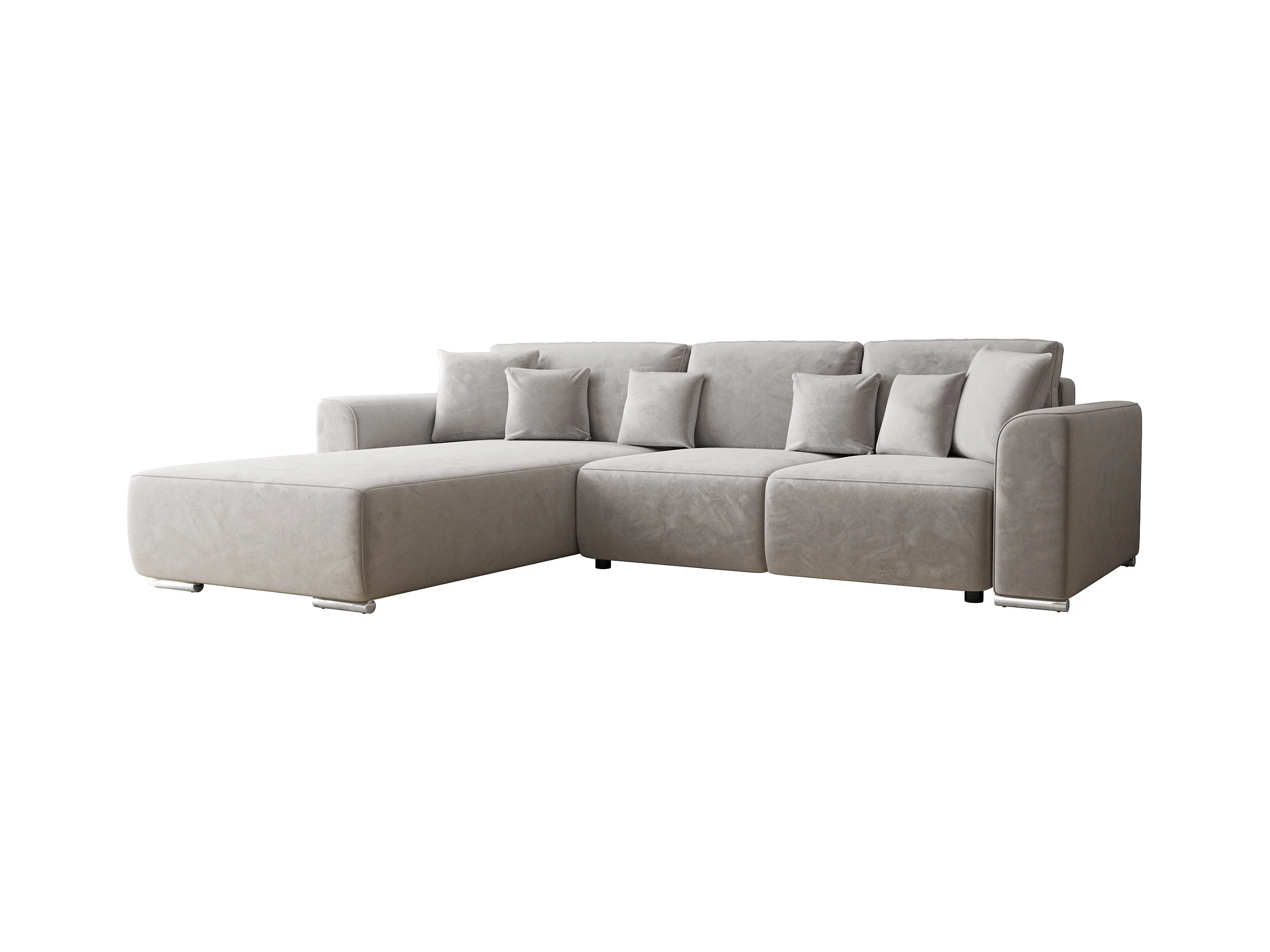 Canapé LOTTA en tissu ASTI, 258x212cm - design élégant, fonction de couchage et grand espace de rangement, à gauche, GRIS CLAIR