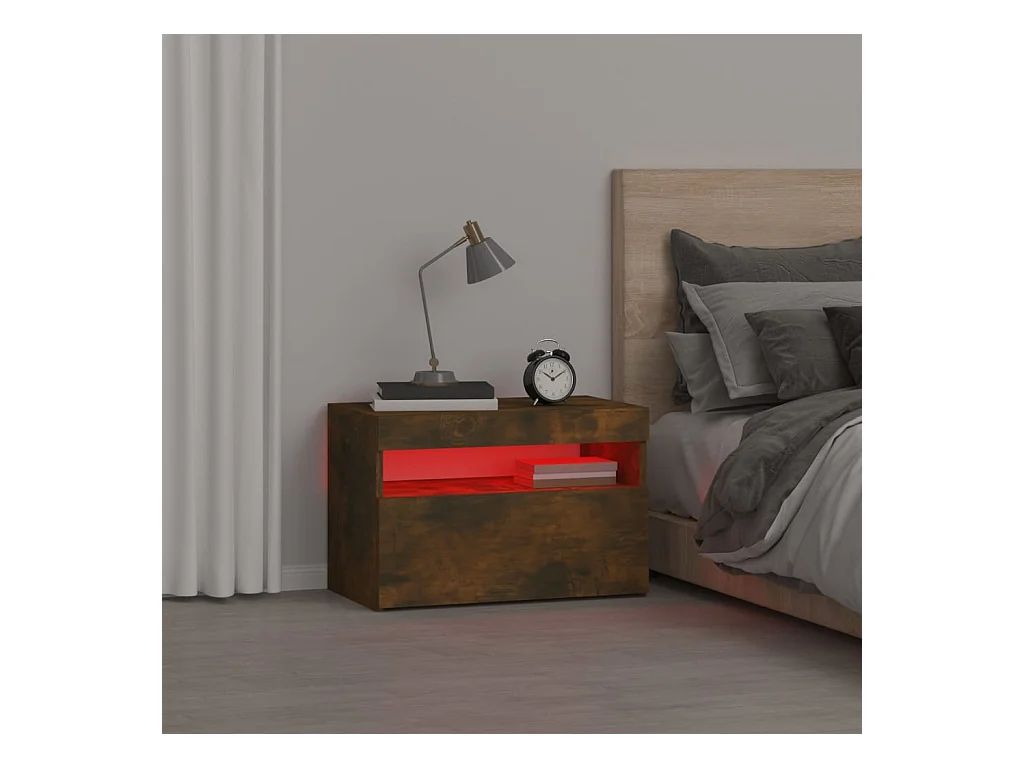 Beeville Table de chevet avec lumières LED Chêne fumé 60x35x40 cm