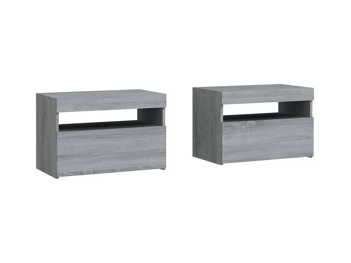 Beeville Tables de chevet 2 pcs et lumières LED Sonoma gris 60x35x40 cm