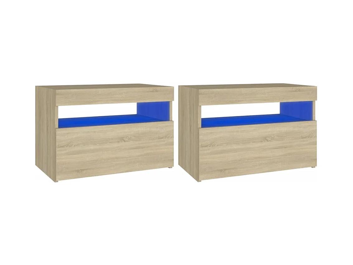 Beeville Tables de chevet à LED 2 pcs Chêne sonoma 60x35x40 cm
