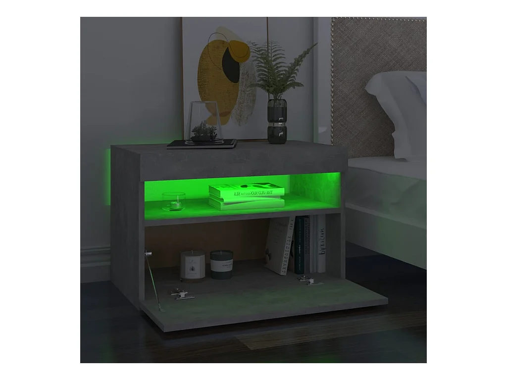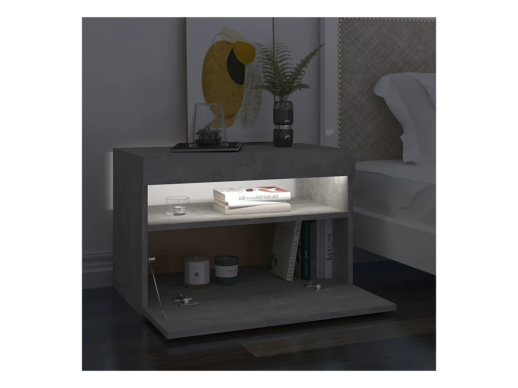 Beeville Tables de chevet avec lumières LED 2 pcs gris béton 60x35x40 cm