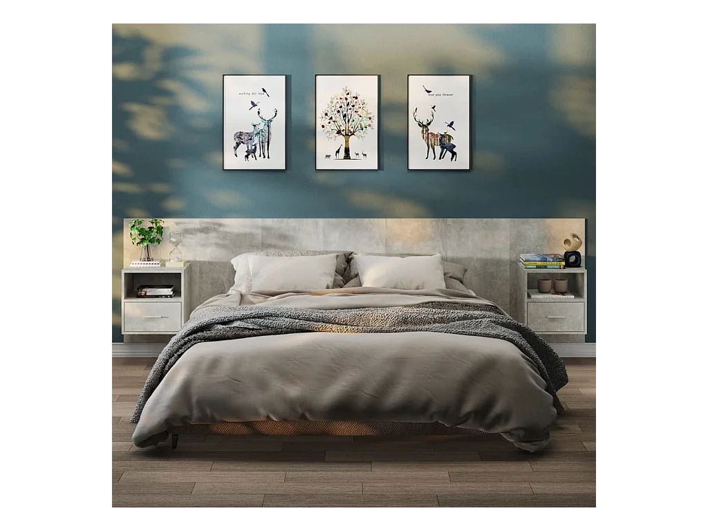 Invel Tables de chevet 2 pcs Gris béton Bois d'ingénierie