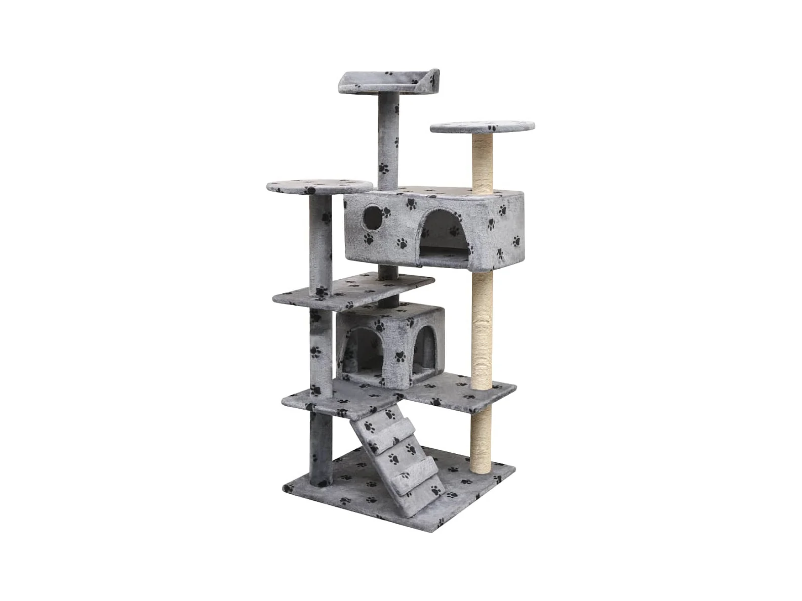Bellmead Arbre à chat et griffoir Sisal 125 cm Empreintes de pattes Gris