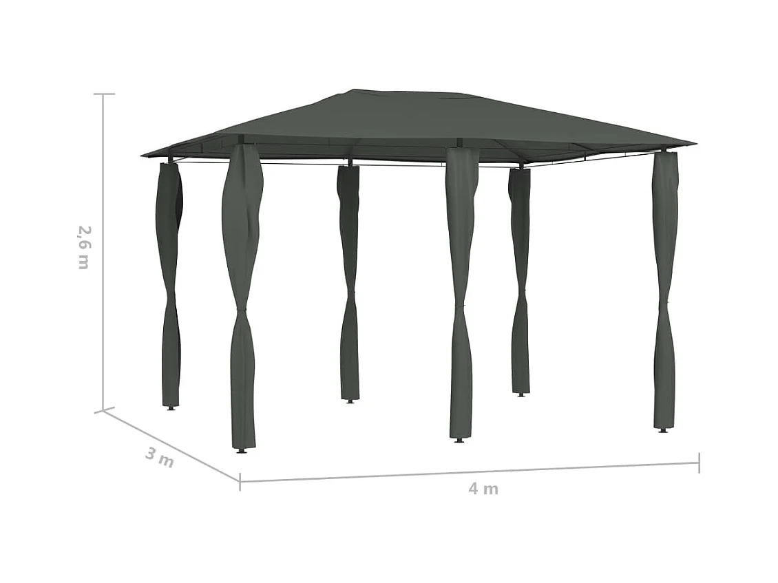 Belvédère à revêtement de poteaux 3x4x2,6 m Anthracite 160 g/m²