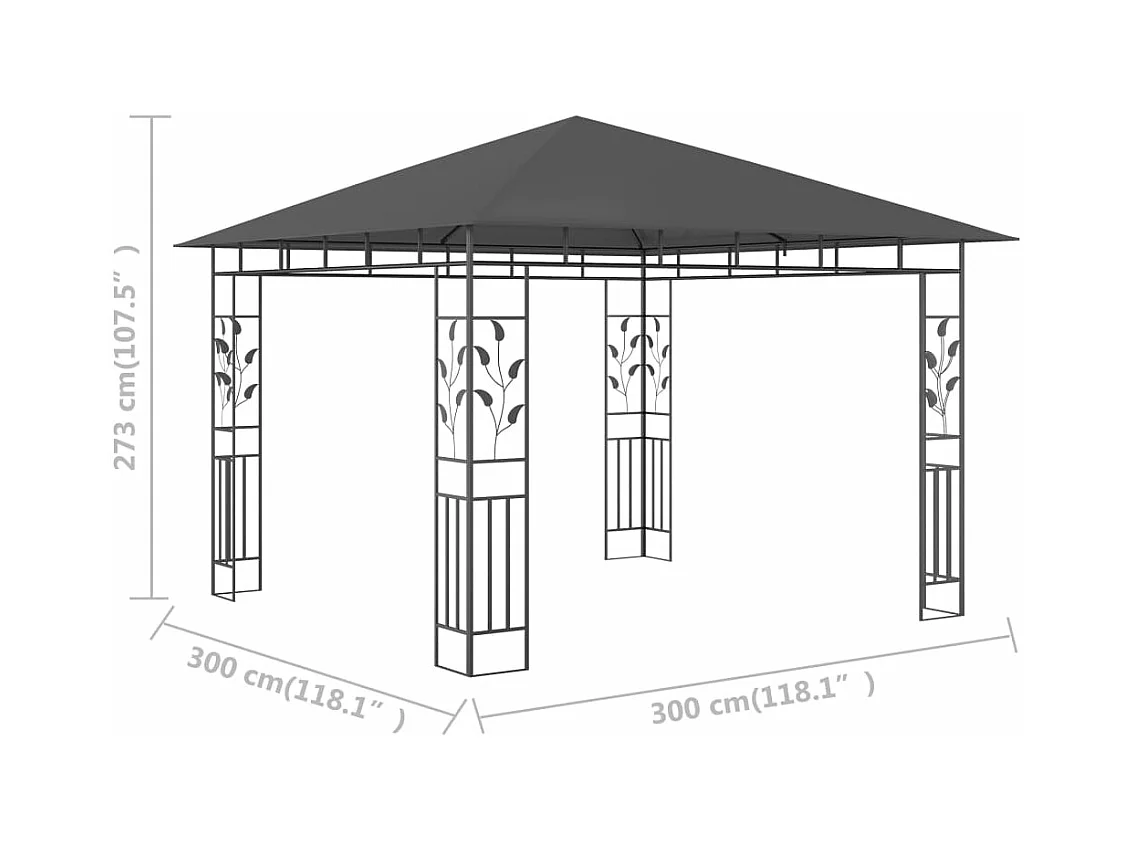 Belvédère avec moustiquaire 3x3x2,73 m Anthracite 180 g/m²