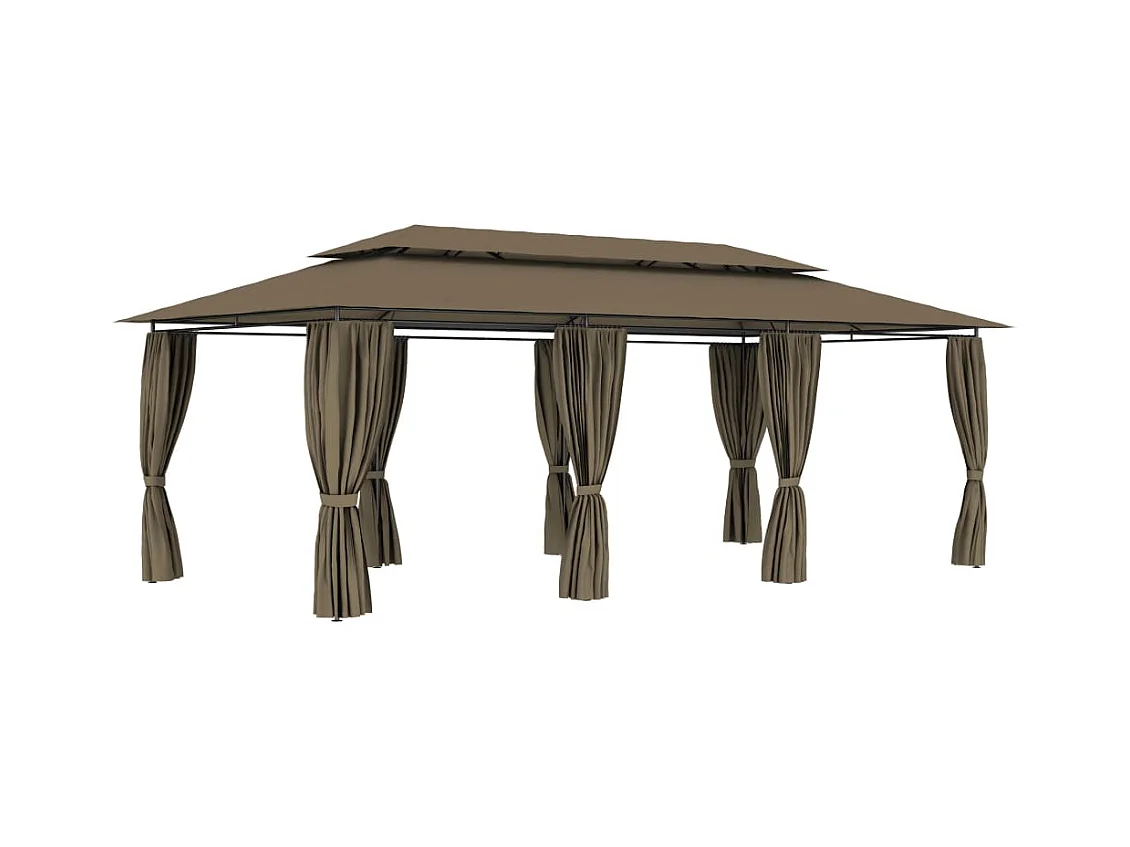 Belvédère avec rideaux 600x298x270 cm Taupe 180 g/m²