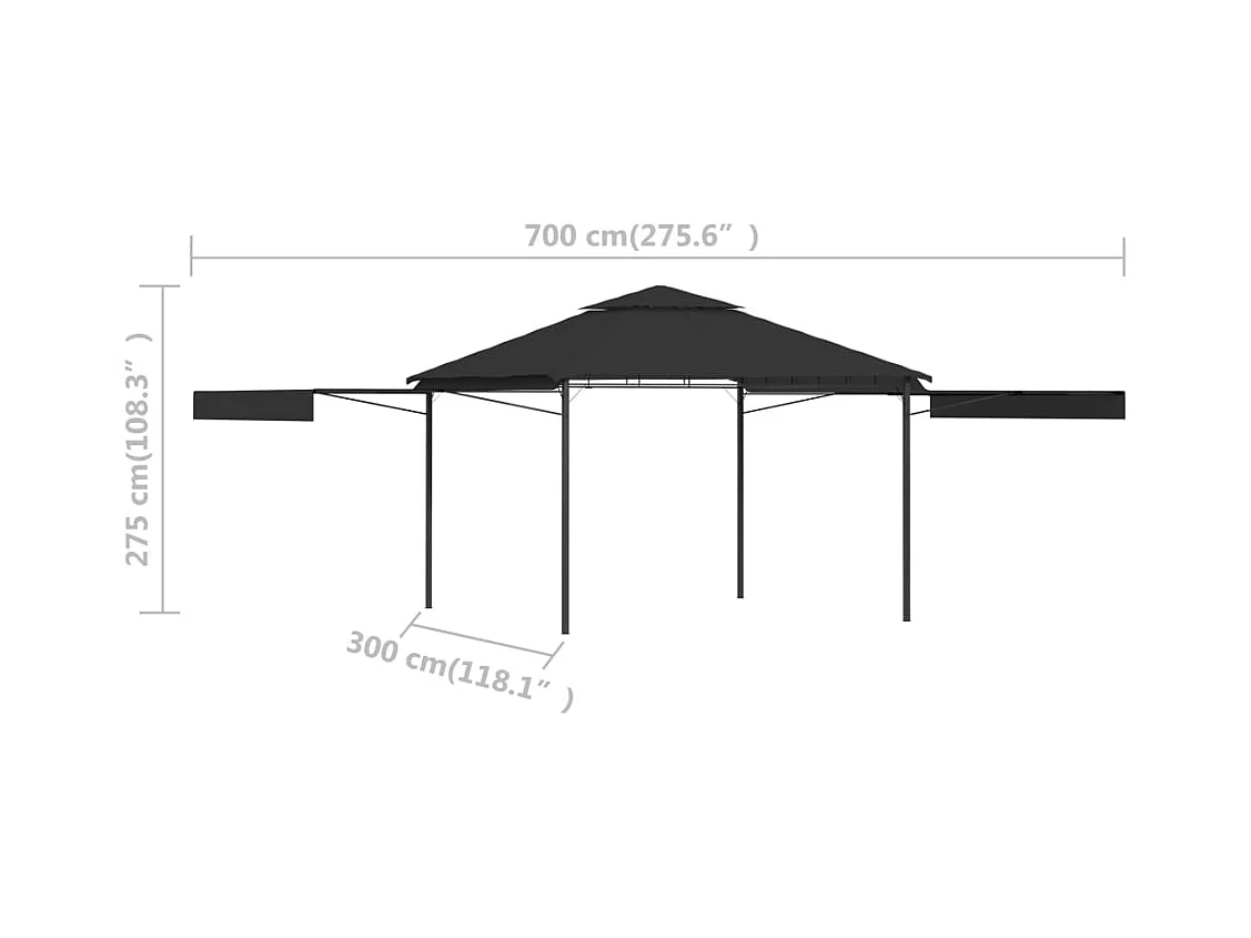 Belvédère et double toits étentus 3x3x2,75 m Anthracite 180g/m²