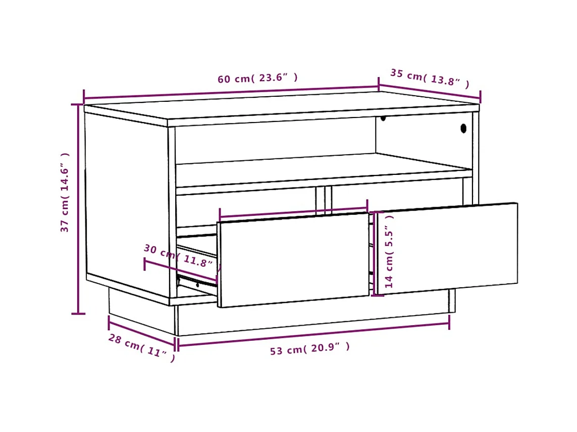 Bemidji Meuble TV Marron miel 60x35x37 cm Bois de pin massif