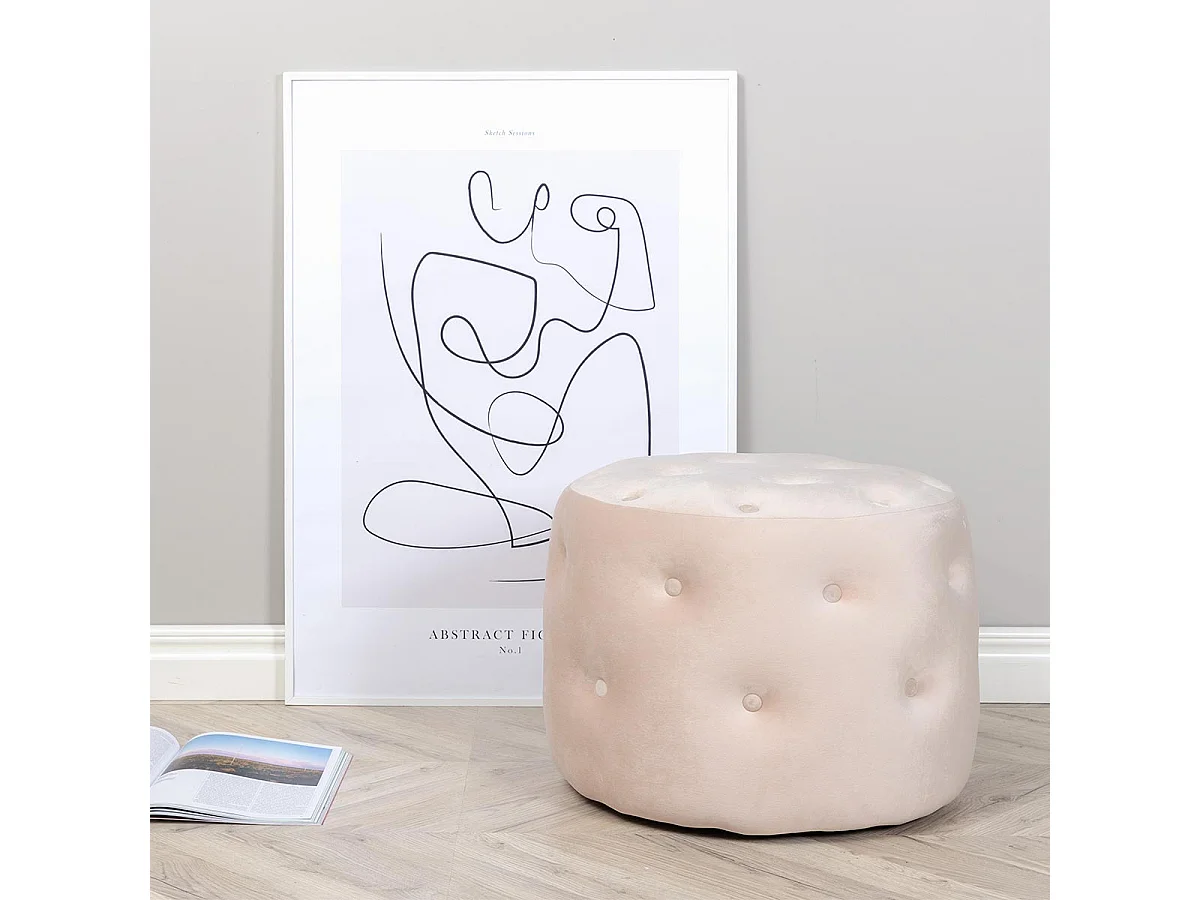 Pouf Capitonné en Velours "Benjamin" 55cm Beige